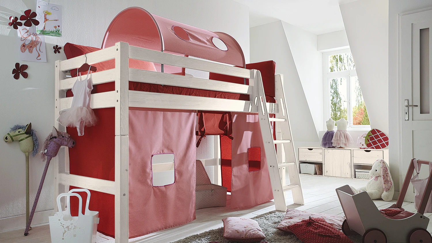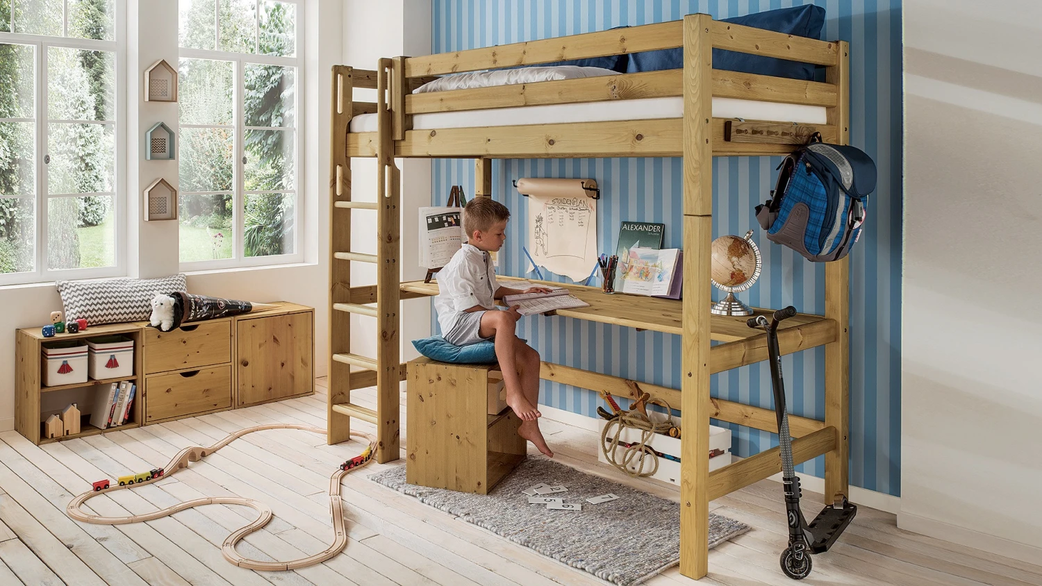 - Mittel-Hochbett – Höhe 140 cm – fĂĽr Kinder aller Altersstufen perfekt