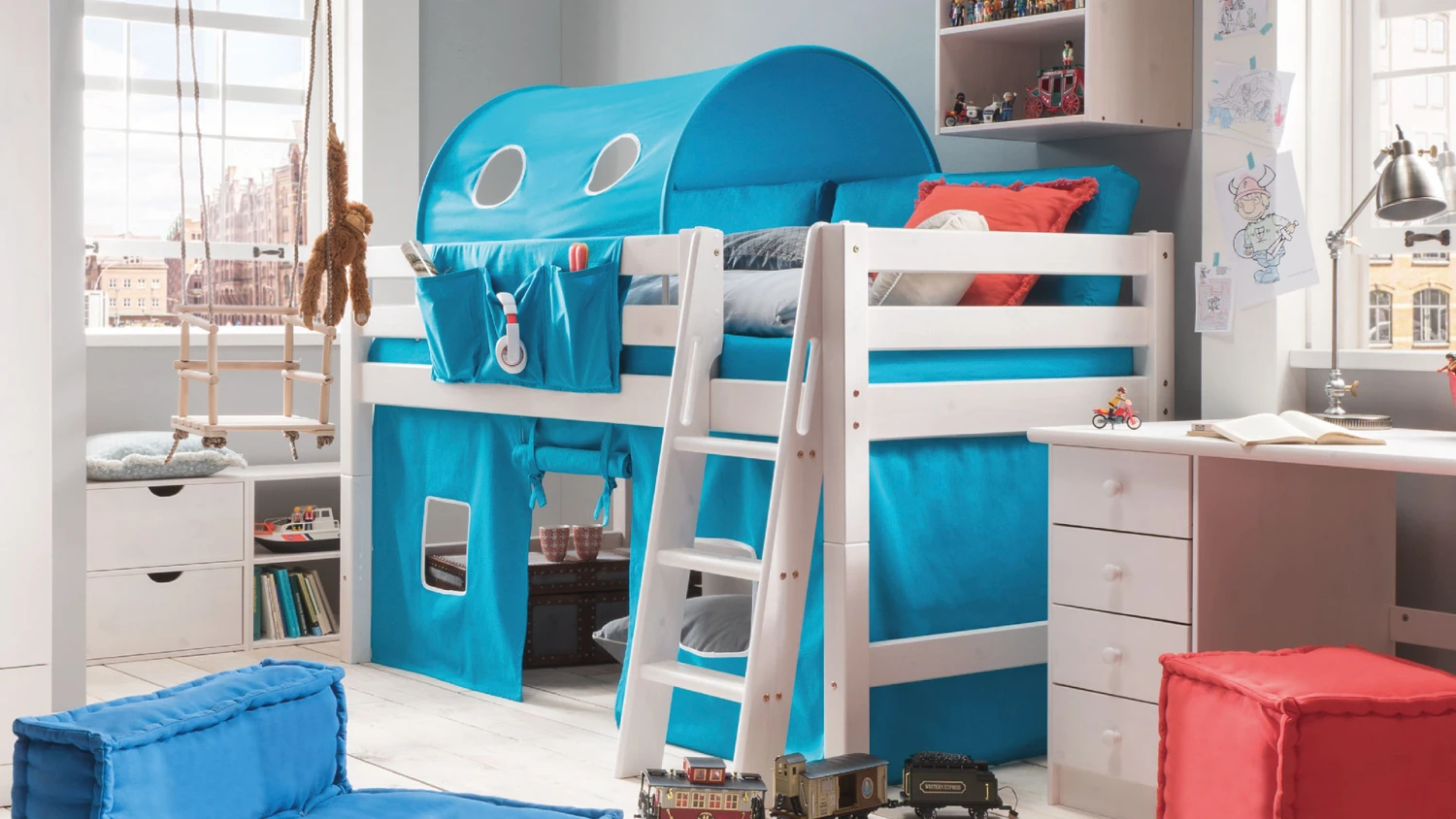 - Mini-Hochbett – Höhe 117 cm – ideal als Spielbett schon fĂĽr kleinere Kinder