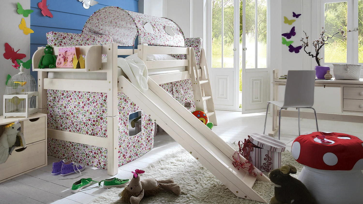- Mini-Hochbett auch mit Rutsche erhältlich