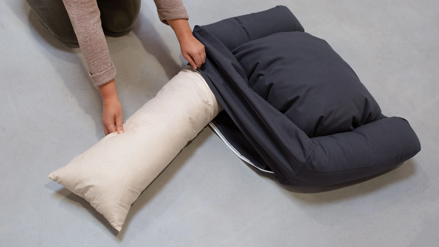 - separater Innenbezug feinfädiger Ă–ko-Perkal aus 100 % Bio-Baumwolle/kbA mit ReiĂźverschluss – erleichtert die Entnahme und Zugabe von FĂĽllmaterial und ermöglicht das gelegentliche Auflockern der FĂĽllung mit der Hand