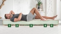 - flächenelastische Matratze mit 5-Zonen-Körperstützsystem zur Abfederung des Schulterbereichs und des Beckens, die sich sehr gut dem Wachstumsprozess der kindlichen Wirbelsäule anpasst