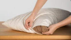 - separater Innenbezug mit Reißverschluss – erleichtert die Entnahme und Zugabe von Füllmaterial und ermöglicht das gelegentliche Auflockern der Füllung mit der Hand