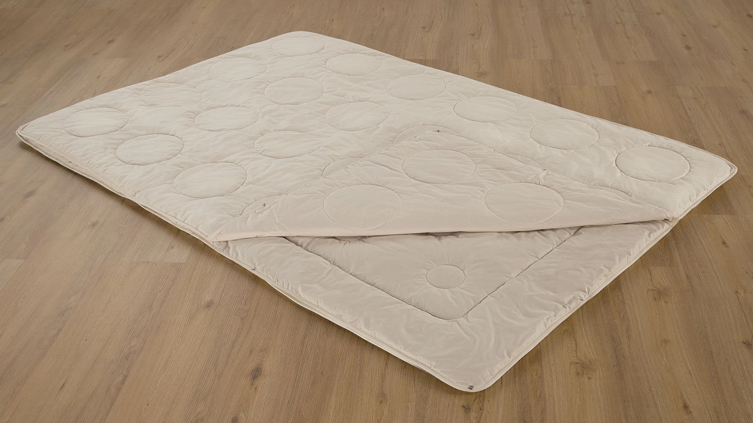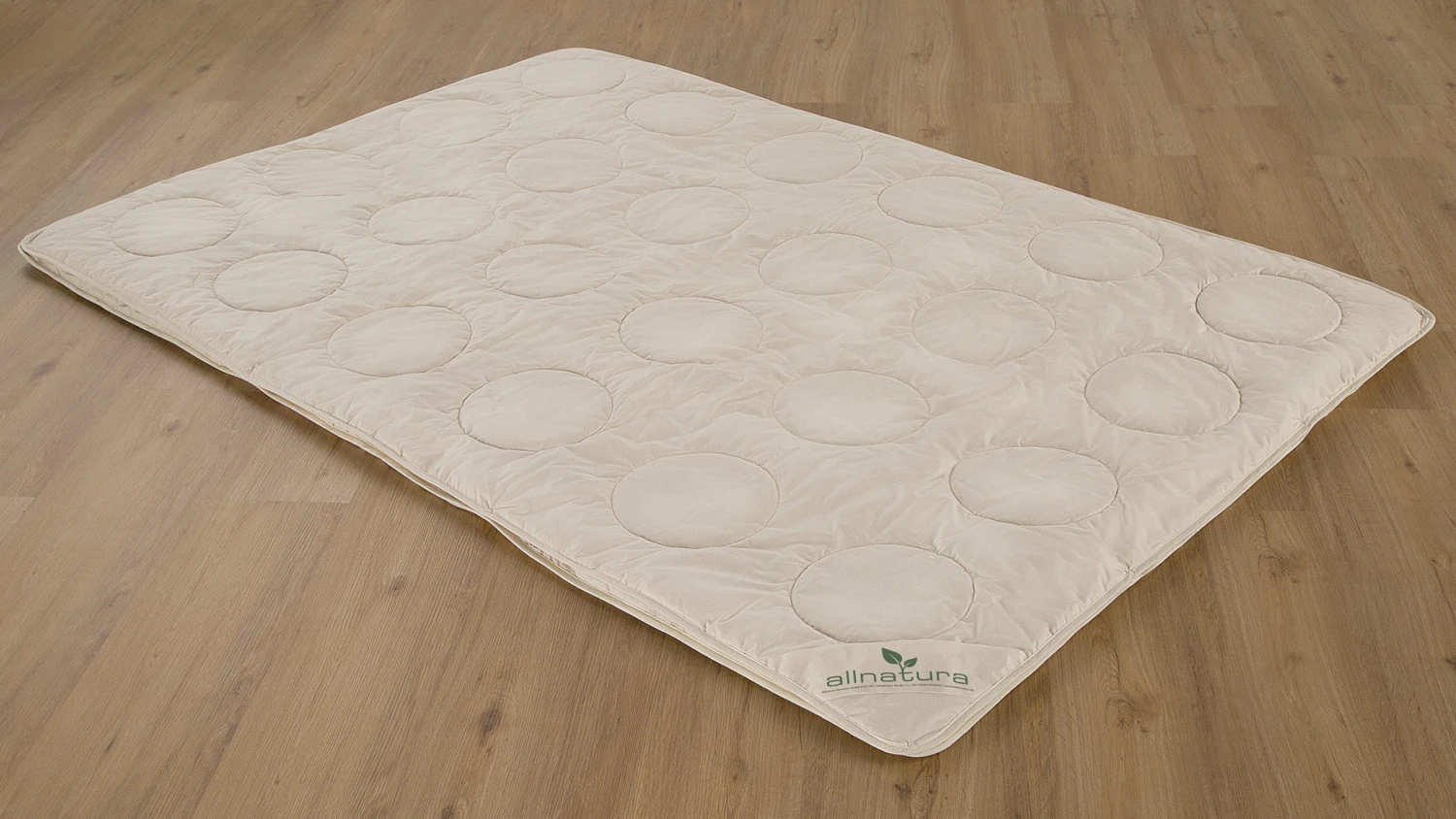 Edel-Satin mit fließendem Fall und seidigem Glanz - aufwändige Steppungen für hohe Anschmiegsamkeit – ultraleichte Decke mit großen Kreisen, leichte Decke mit kleinen Kreisen und Randrolle
