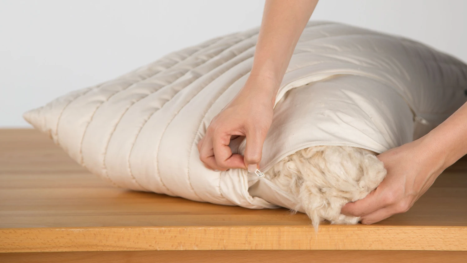 - separater Innenbezug mit Reißverschluss – erleichtert die Entnahme und Zugabe von Füllmaterial und ermöglicht das gelegentliche Auflockern der Füllung mit der Hand