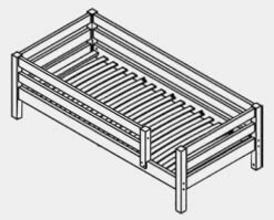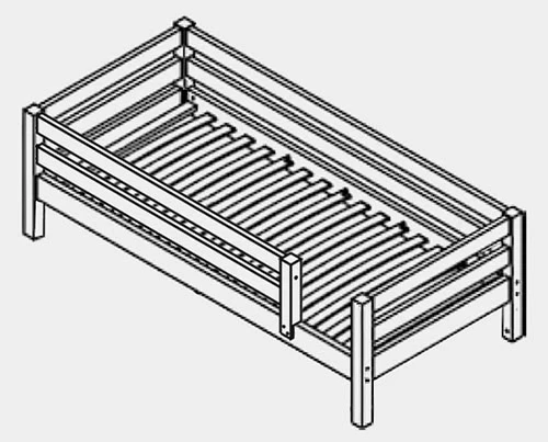 mit Kopf- und Fußteil, einem hinteren Seitenteil und einer Absturzsicherung mit einem Ausstieg vorne - 1 Roll-Lattenrost aus unbehandeltem Kiefernholz im Preis enthalten