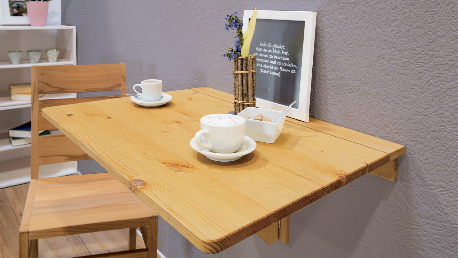 - praktischer, geradliniger Klapptisch zur Wandmontage