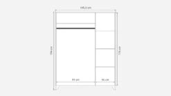 links 2 Drehtüren, dahinter 1 breiter Einlegeboden, darunter 1 Kleiderstange - in der Maßgrafik erhalten Sie auch Informationen zur Schrank-Inneneinteilung – Maßgrafik anzeigen