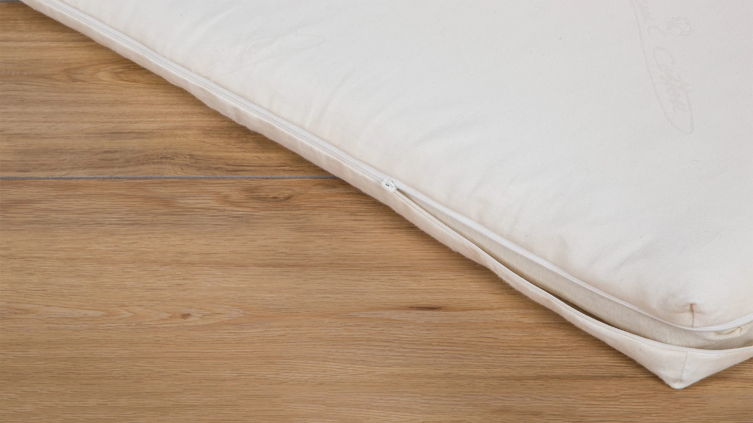 wahlweise aus Bio-Baumwolle/kbA (500 g/qm) oder Schafschurwolle (500 g/qm, im Winter wärmend, im Sommer temperatur-ausgleichend) - Fester Bezug (unversteppt):