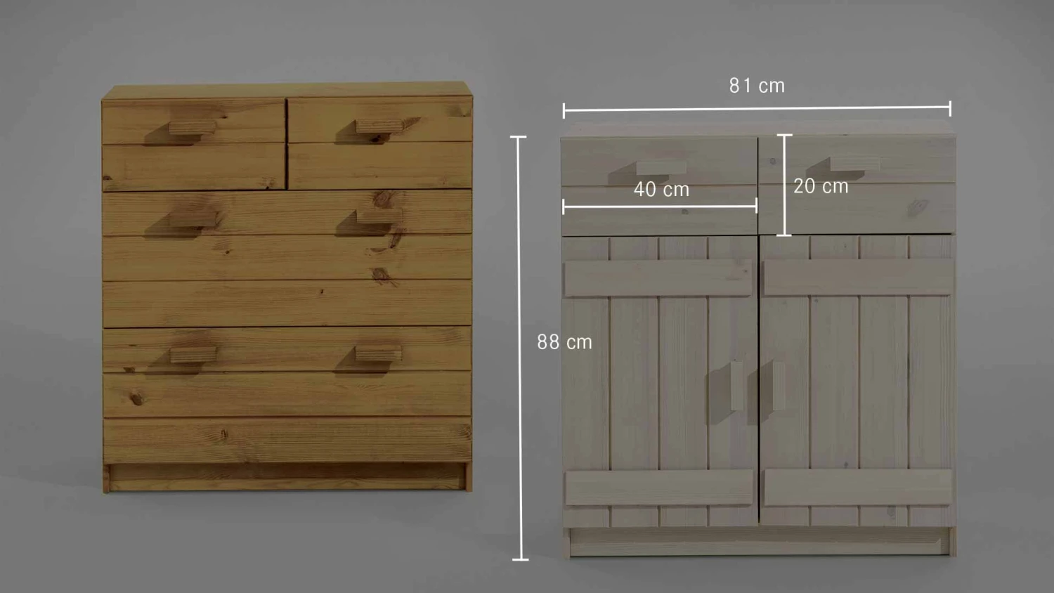 mit 2 schmalen, nebeneinander angeordneten Schubladen oben und 2 breiten Schubladen unten