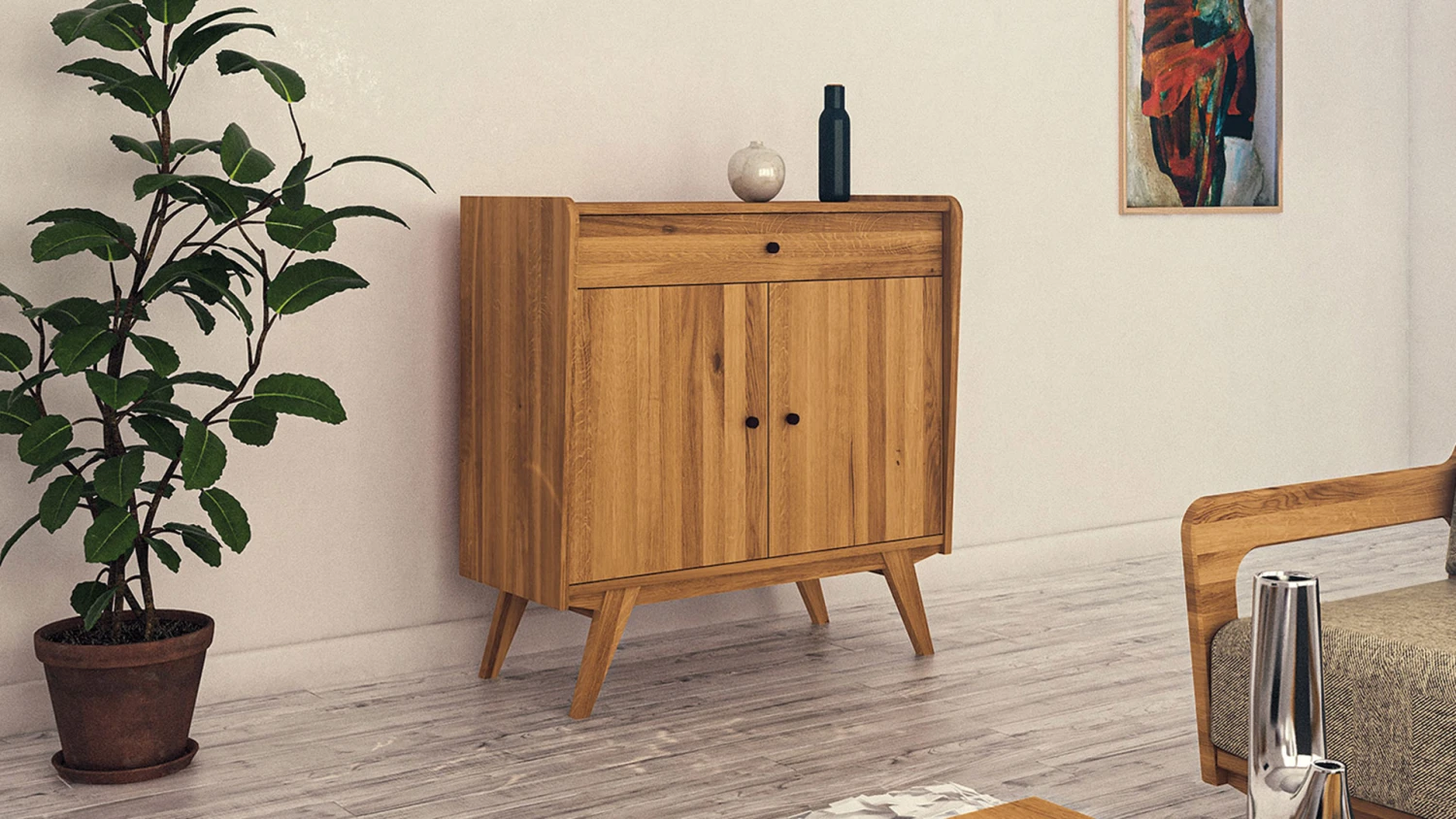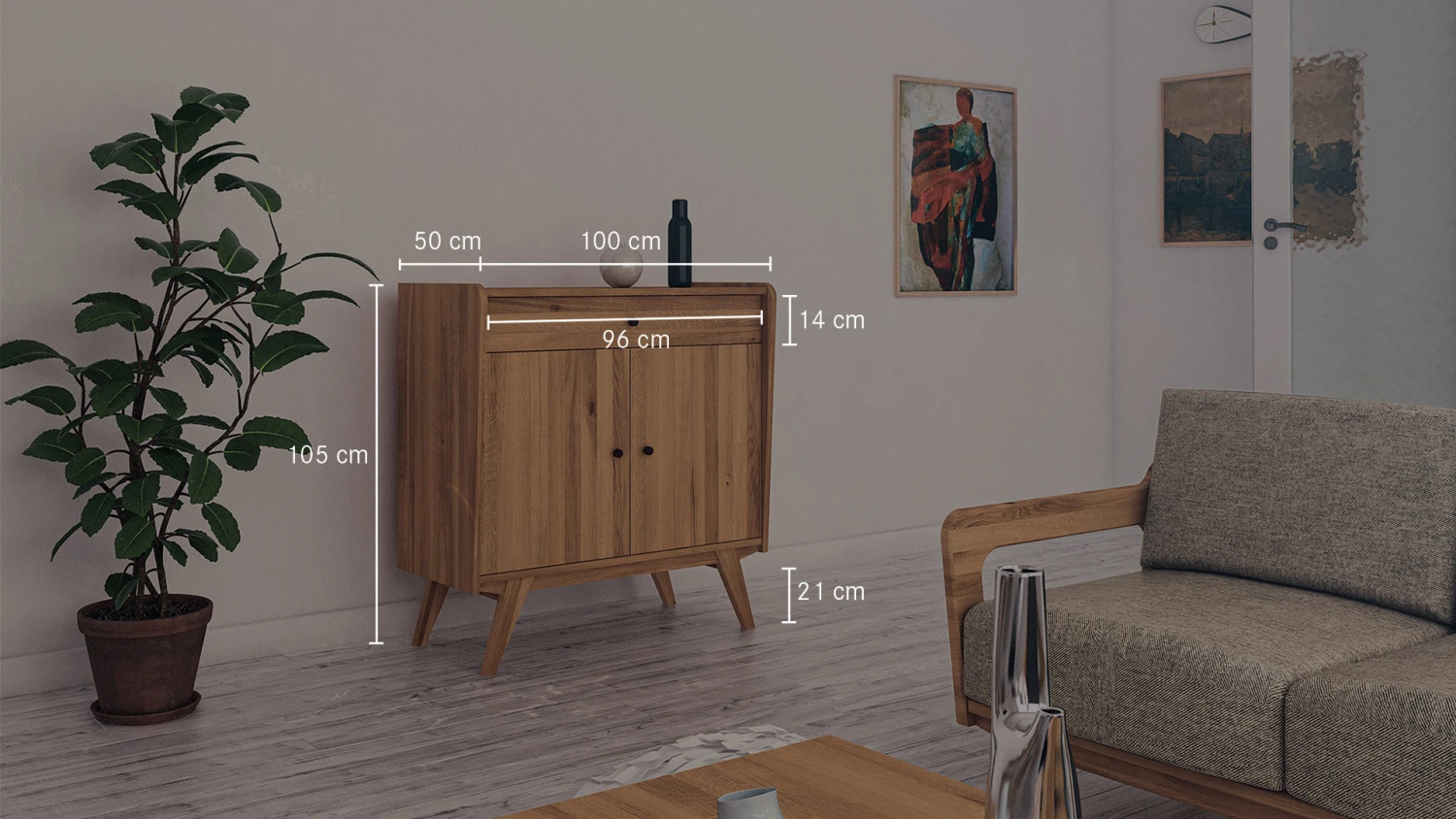 - Schrankfüße schräg verlaufend und handwerklich perfekt in die schöne Zarge integriert