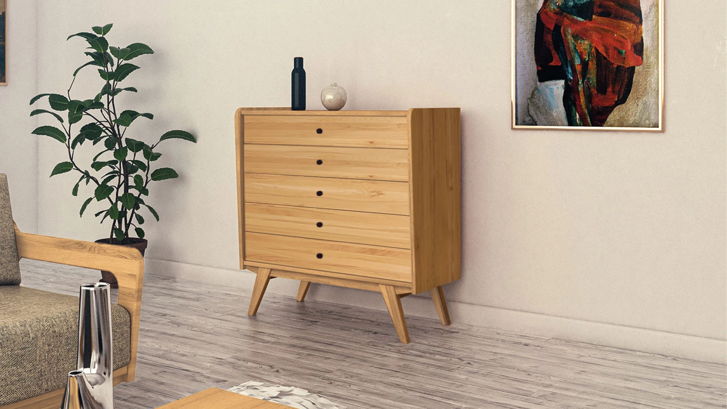 5 breite Schubladen