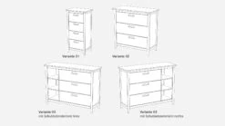 Montage des Schubladen-Elements rechts oder links möglich (kann beim Aufbau ausgewählt werden)