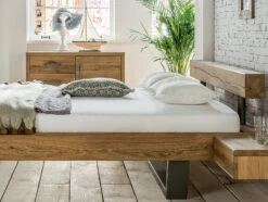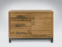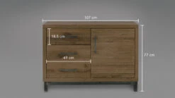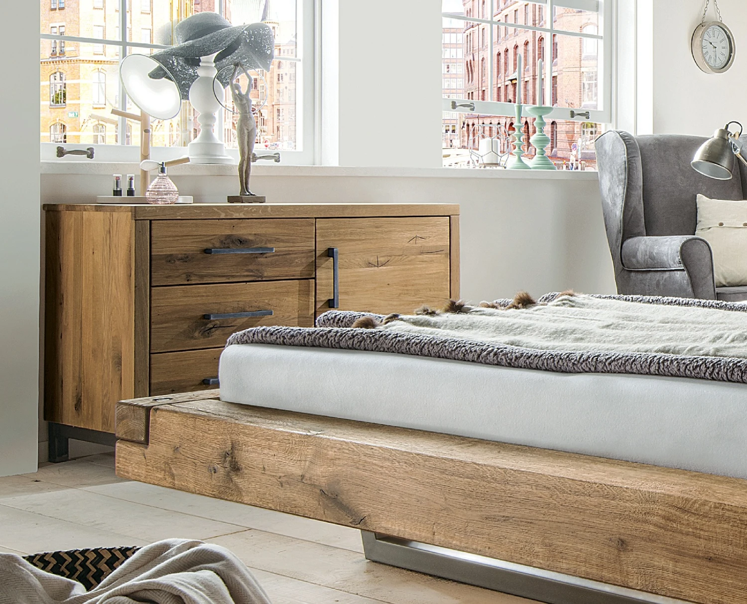 - farblich abgesetzte Griffe und Schrankfüße aus Schwarzstahl unterstreichen die einzigartige Maserung