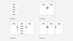 3 TĂĽren, dahinter jeweils 1 kurzer Fachboden, 3 Schubladen darĂĽber