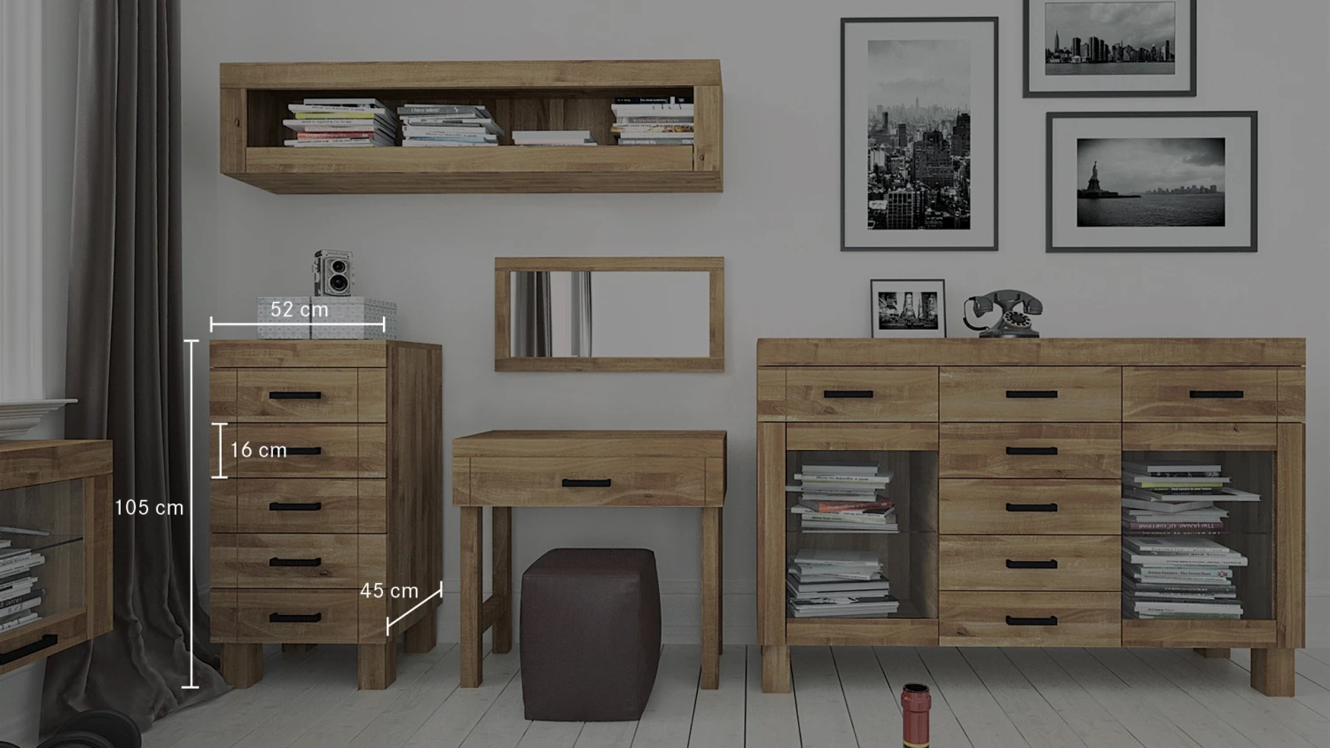 - weitere Größen/Maße, Holzarten oder Oberflächen-Behandlungen