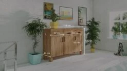 2 Türen, dahinter jeweils 1 kurzer Fachböden, 2 Schubladen darüber