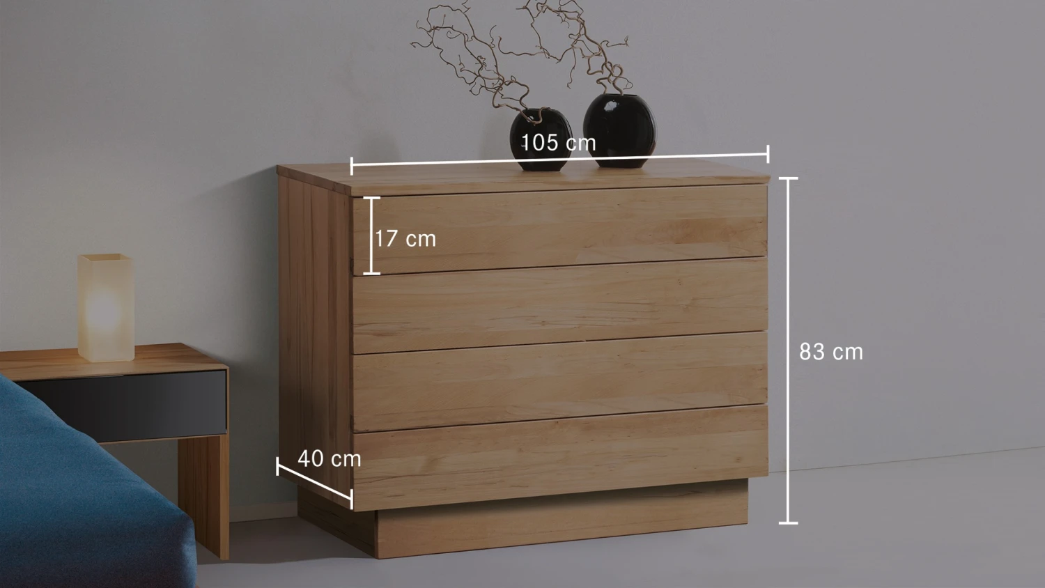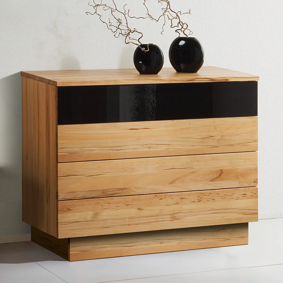 - obere Schublade wahlweise mit Holzblende oder Glasblende in weiß, weinrot oder schwarz
