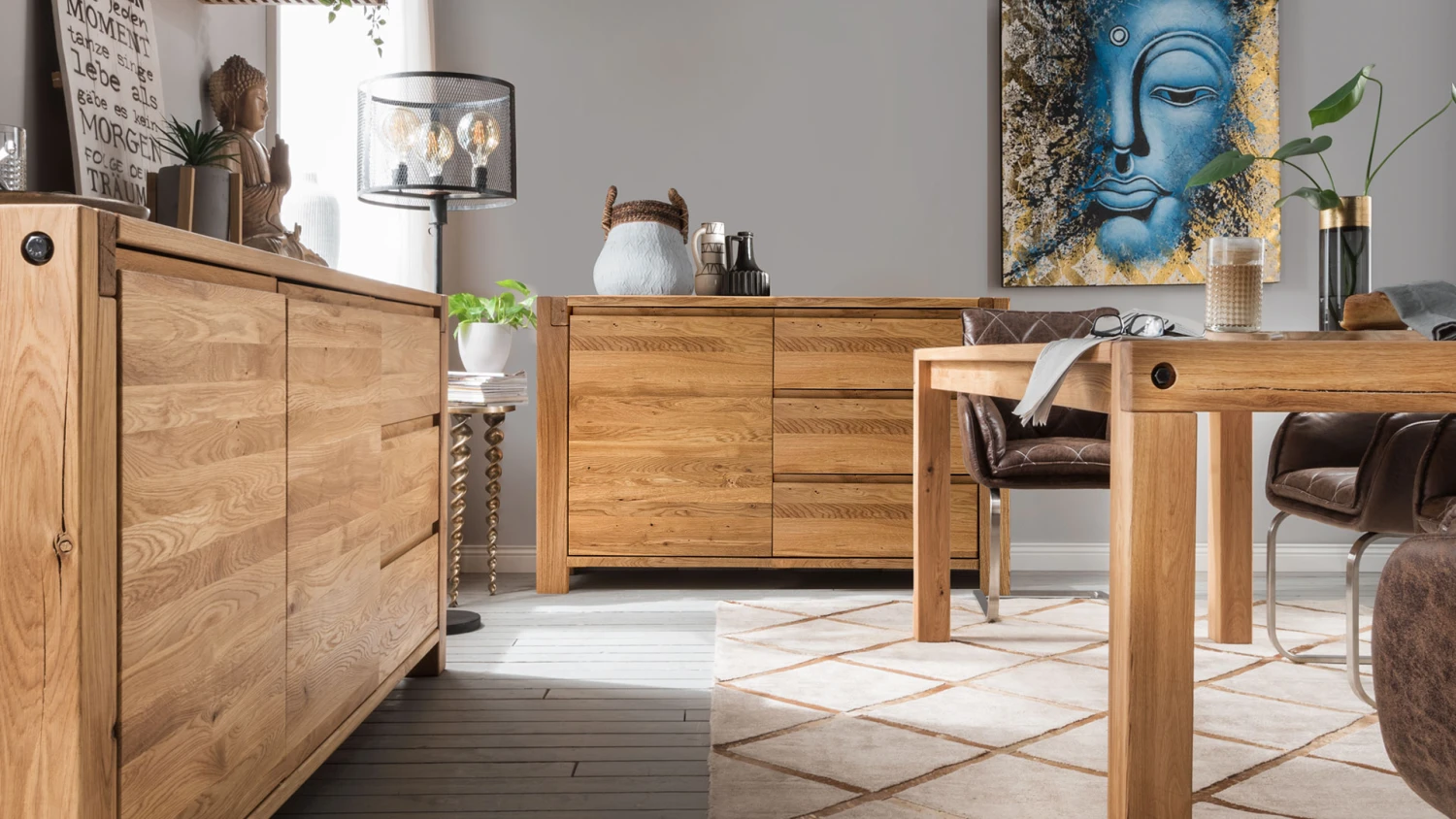 - aus massivem Wildeichenholz, aufwändig stabverleimt mit durchgehenden Lamellen