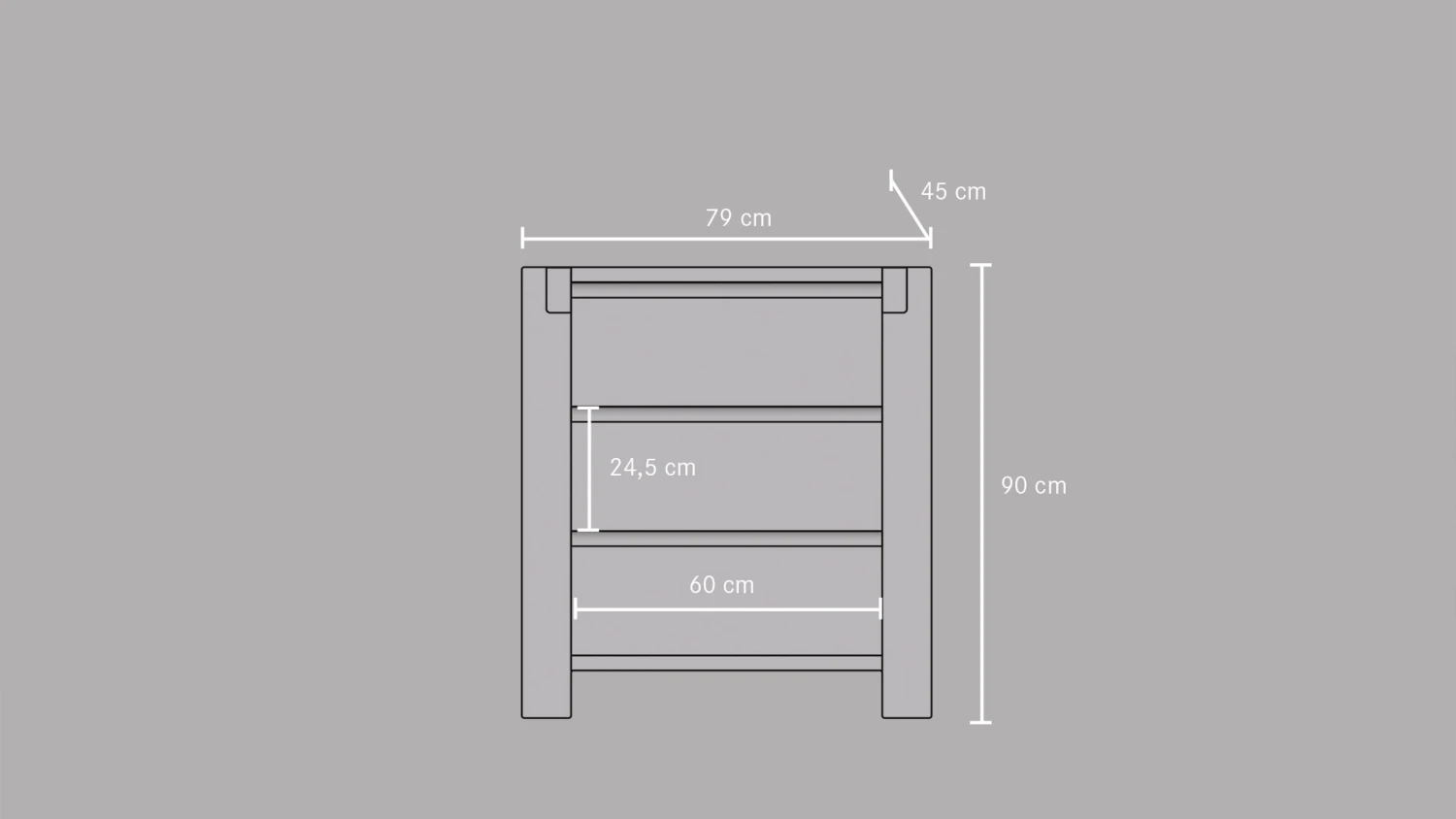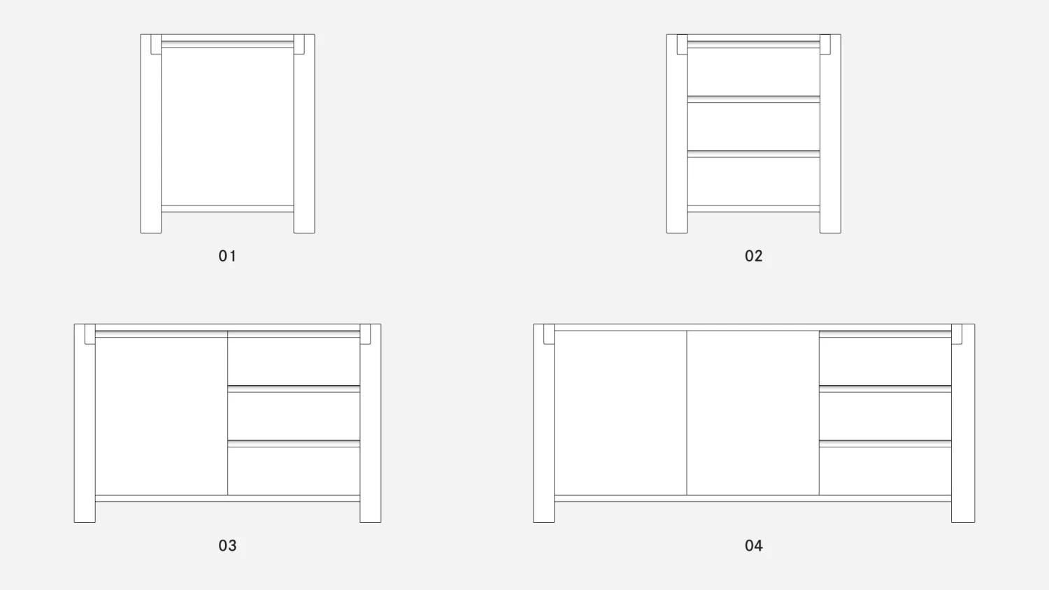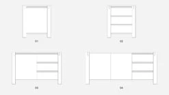 mit 1 TĂĽr links, dahinter 1 Fachboden, rechts 3 Schubladen