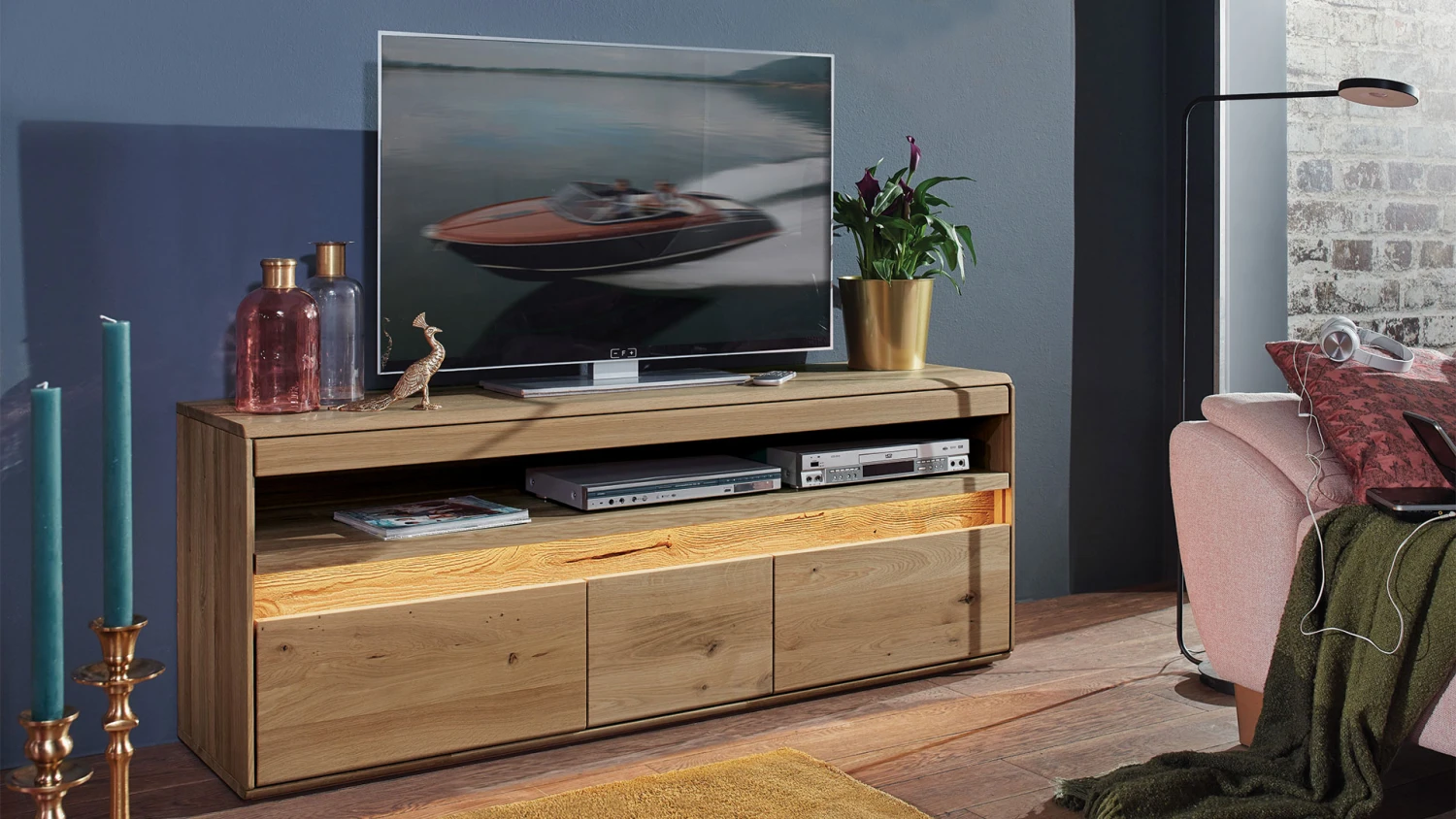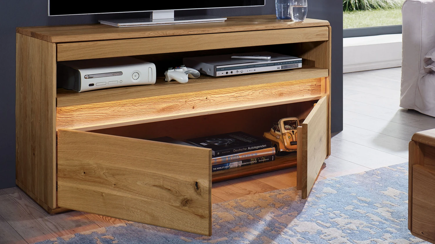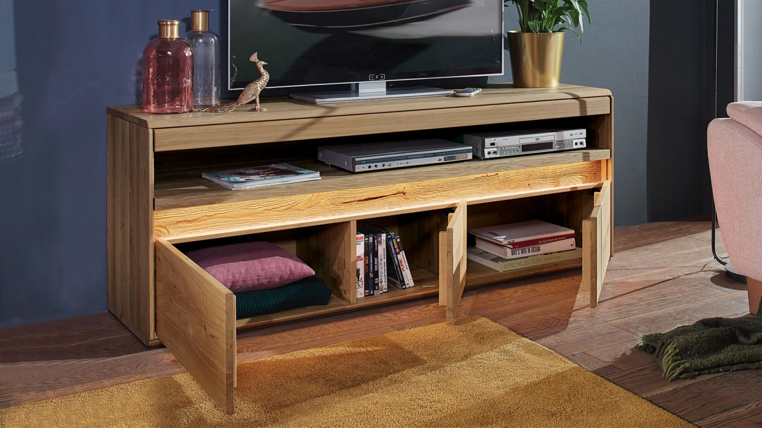 mit 1 offenen Gerätefach, darunter 2 breite Türen
