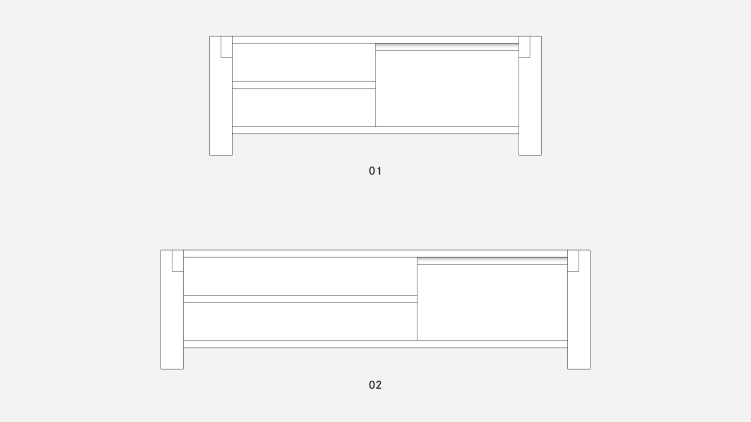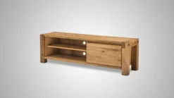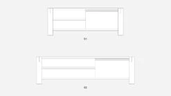 mit 2 breiten, offenen Fächern links, rechts 1 Klappe, dahinter 1 Fachboden