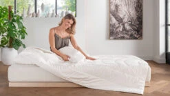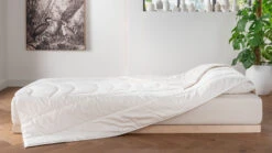 - Wärmeklasse 2 – luftig leichte, wenig wärmende Bettdecke mit zusätzlich wärmender Vliesumlage gegen kalte FĂĽĂźe