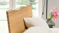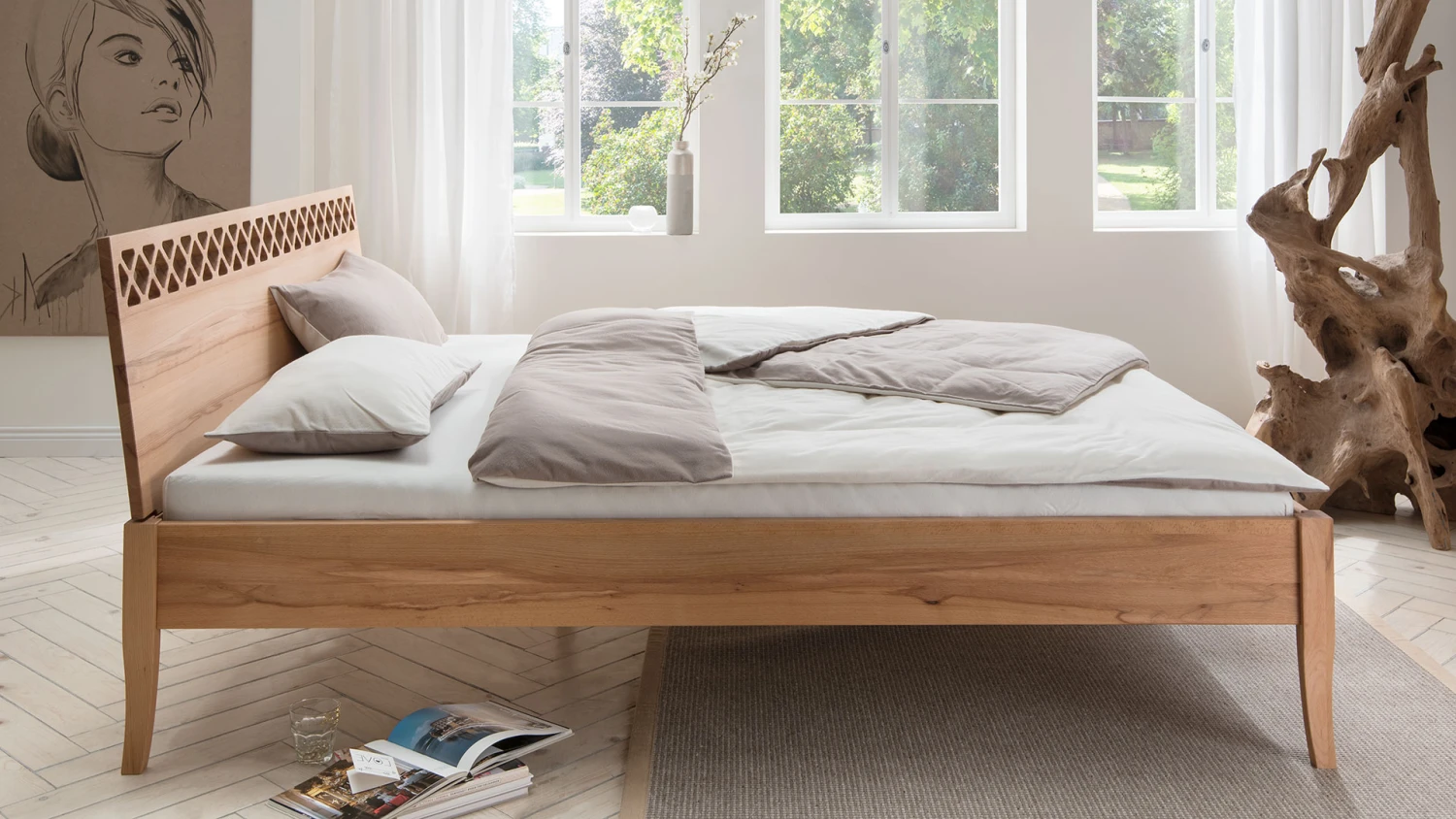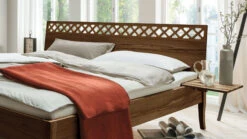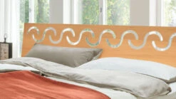 mit aufwändigen, orientalisch anmutenden Einfräsungen, die die kantigen Formen des Bettes dekorativ auflockern - Kopfteil „Baumkante“