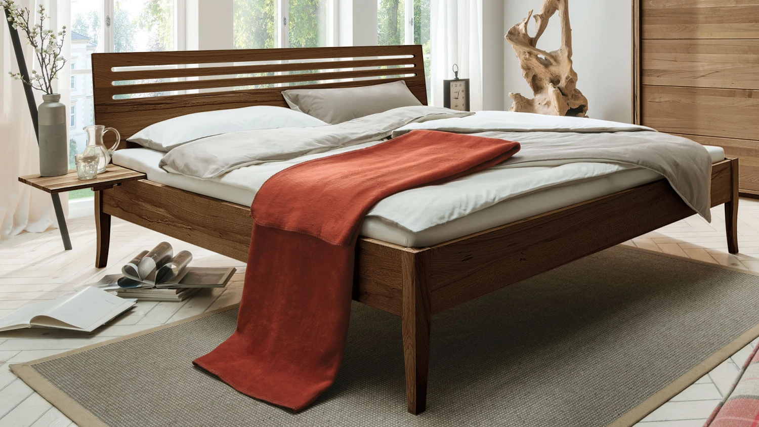 - formschöne, geschweifte Bettfüße