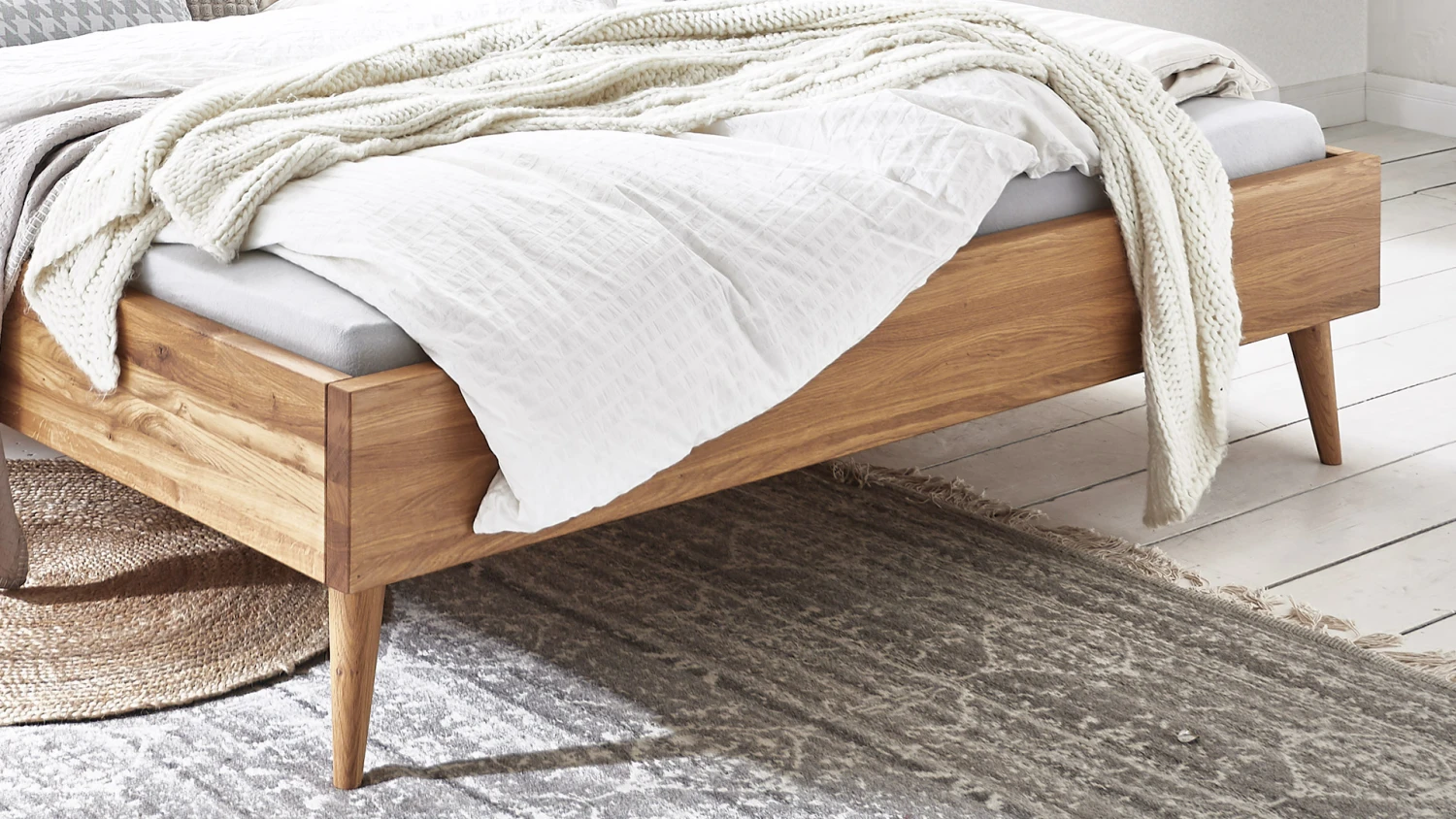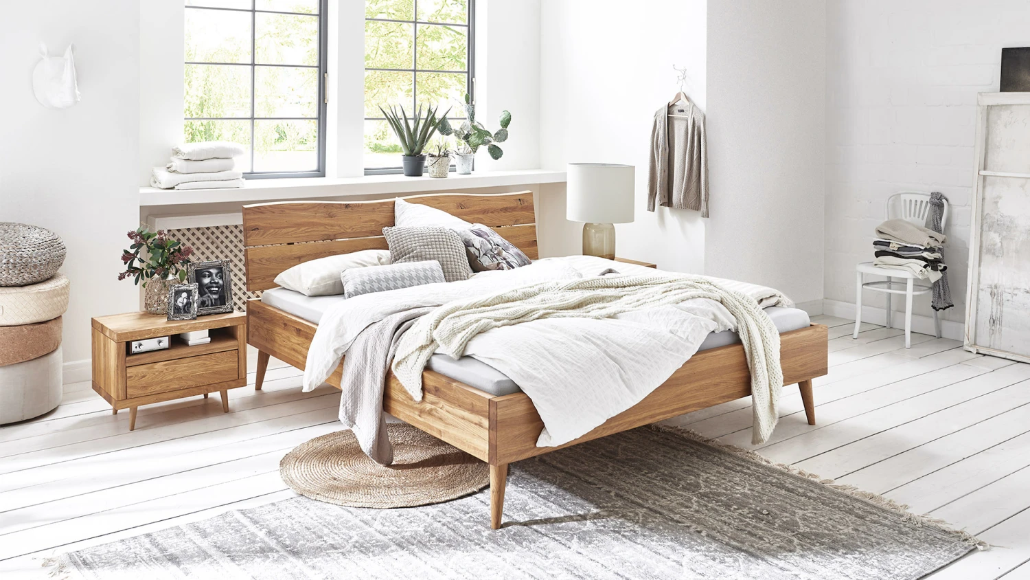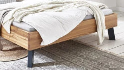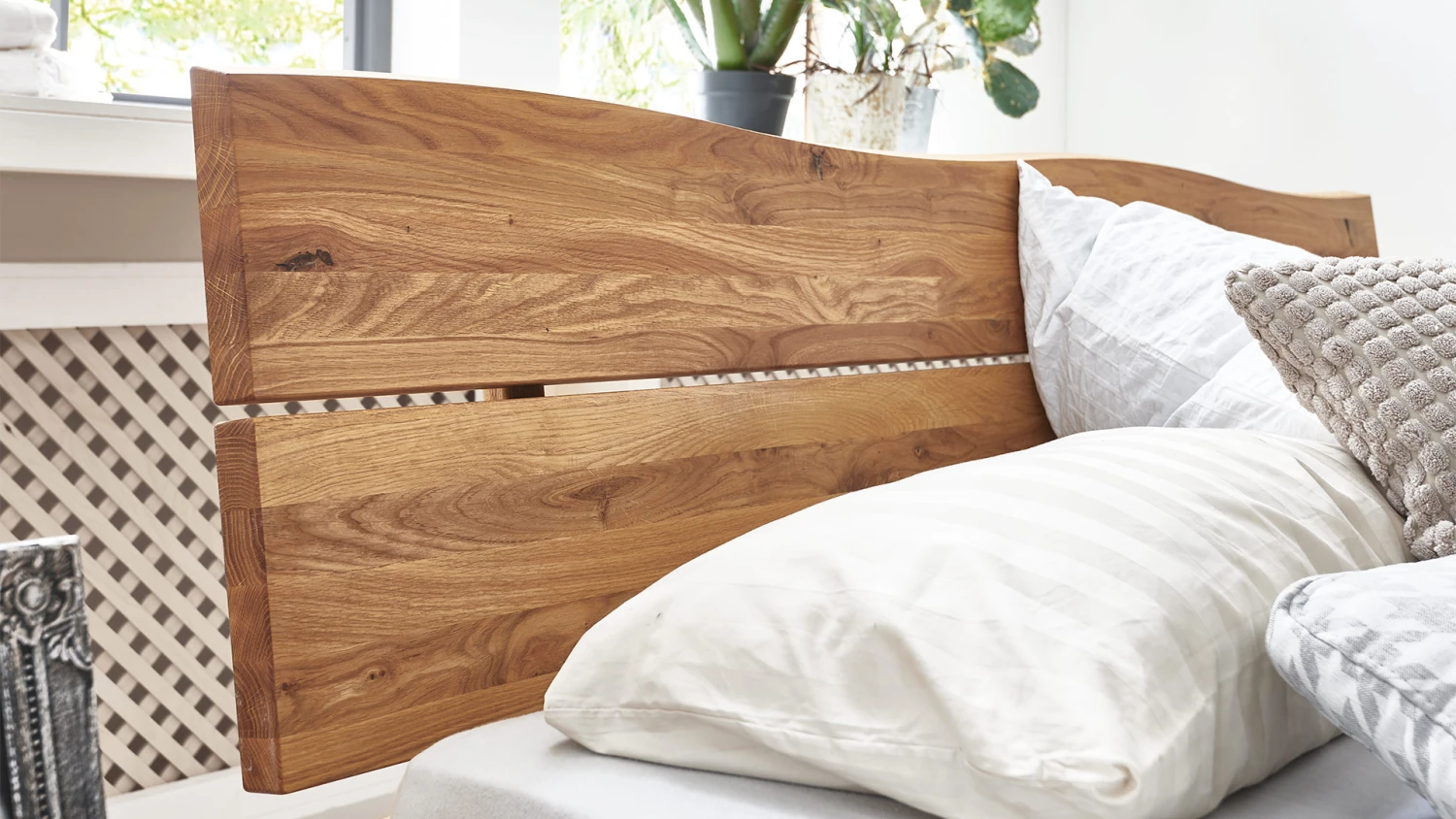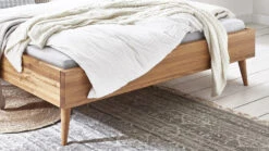 - modern auffälliges Massivholzbett mit durchgehenden Lamellen