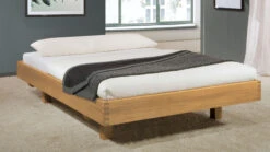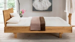 - modern zurĂĽckhaltend gestaltetes Massivholz-Bett mit hochwertigen Zinken-Eckverbindungen