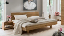 - modern zurĂĽckhaltend gestaltetes Massivholz-Bett mit hochwertigen Zinken-Eckverbindungen