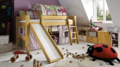 Spielvorhang für Mini-Hochbetten „Kiddy“ und „Pico“ – verwandelt den Platz unter dem Bett in ein buntes Spielhaus