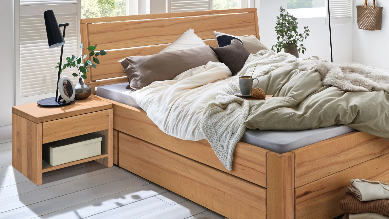 - aus massivem Kiefern-, Kernbuchen- oder Eichenholz, aufwändig stabverleimt mit durchgehender Lamelle