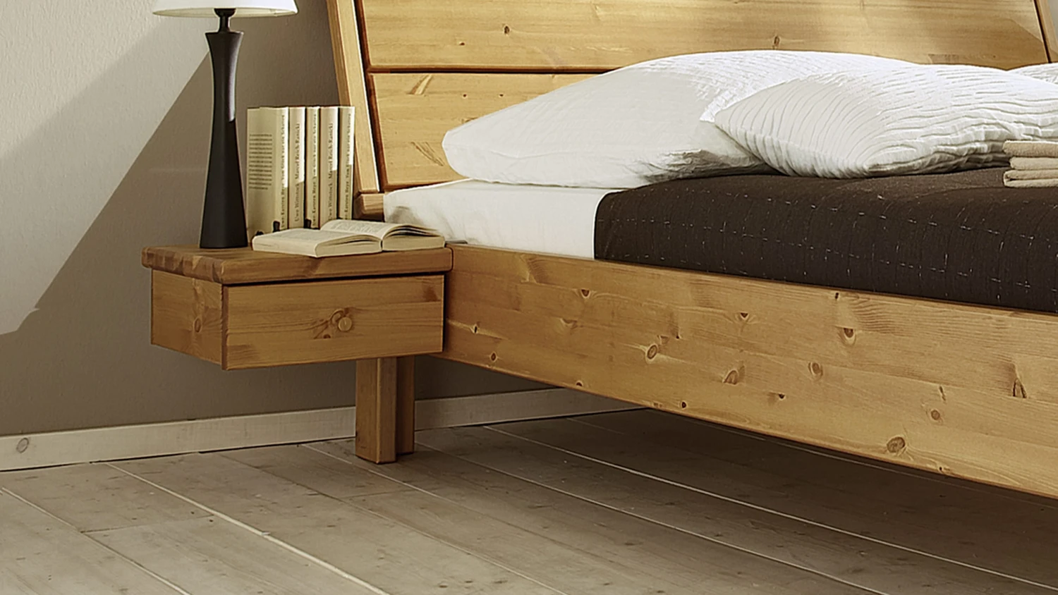 Ablage zum Einhängen an den Bettseiten, darunter 1 Schublade mit Holzknopf - Nachttisch: