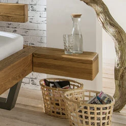 frei hängende, rechteckige Ablage mit Schublade zum Anbringen an die Bettseite - Variante 03