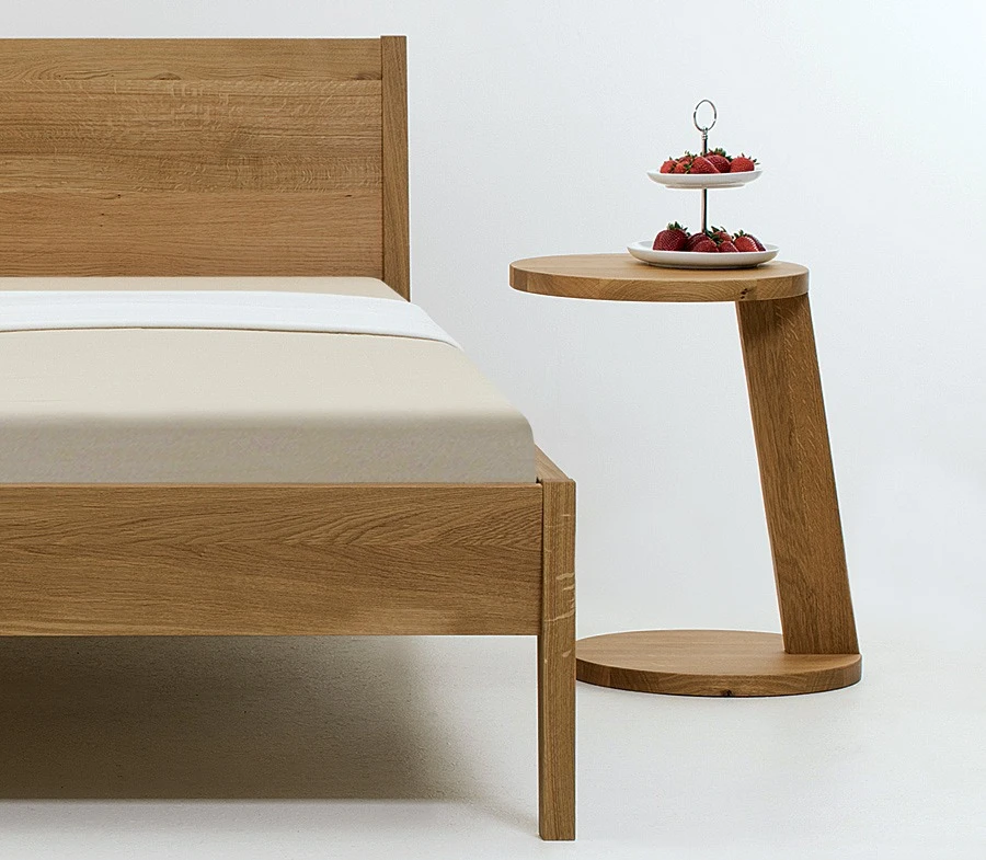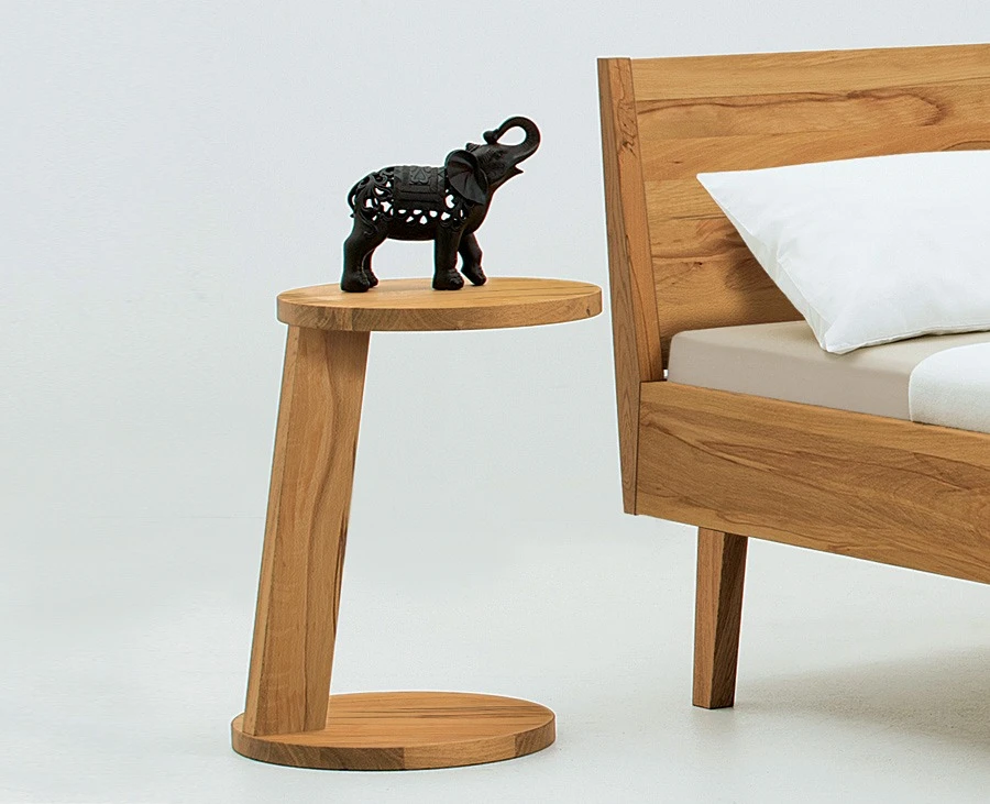 - mit schrägem Standfuß und runder Boden- und Tischplatte