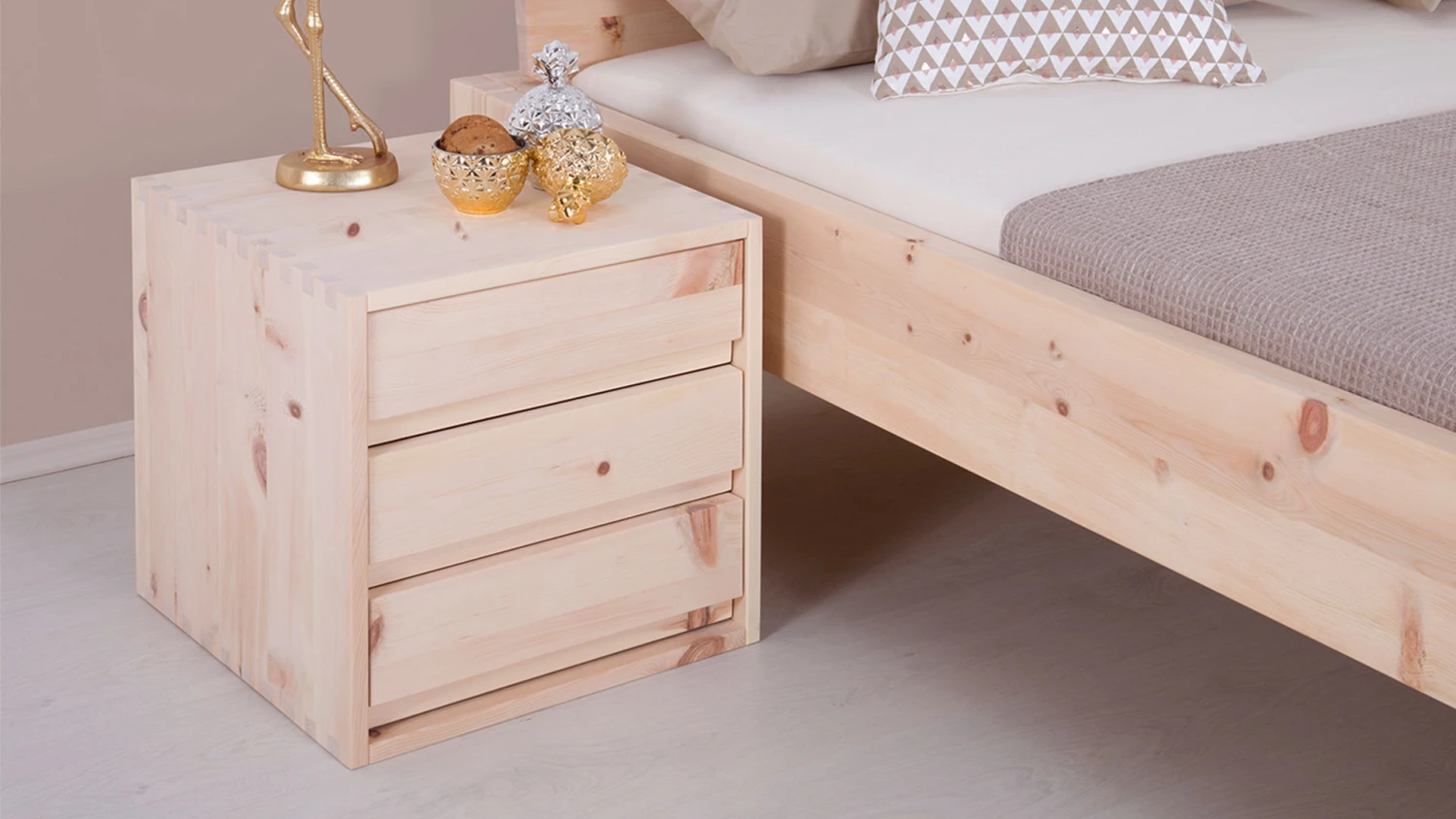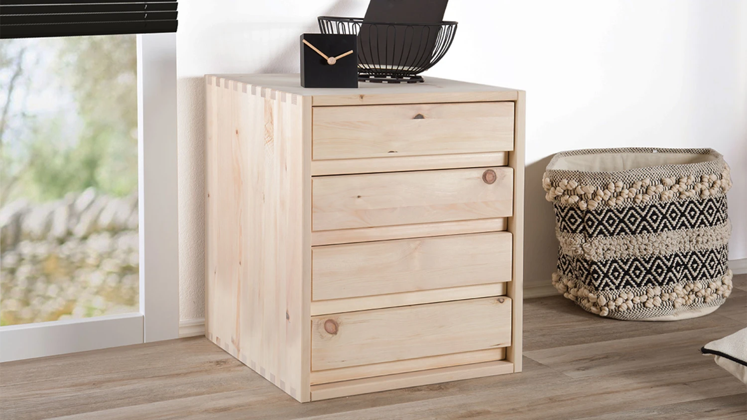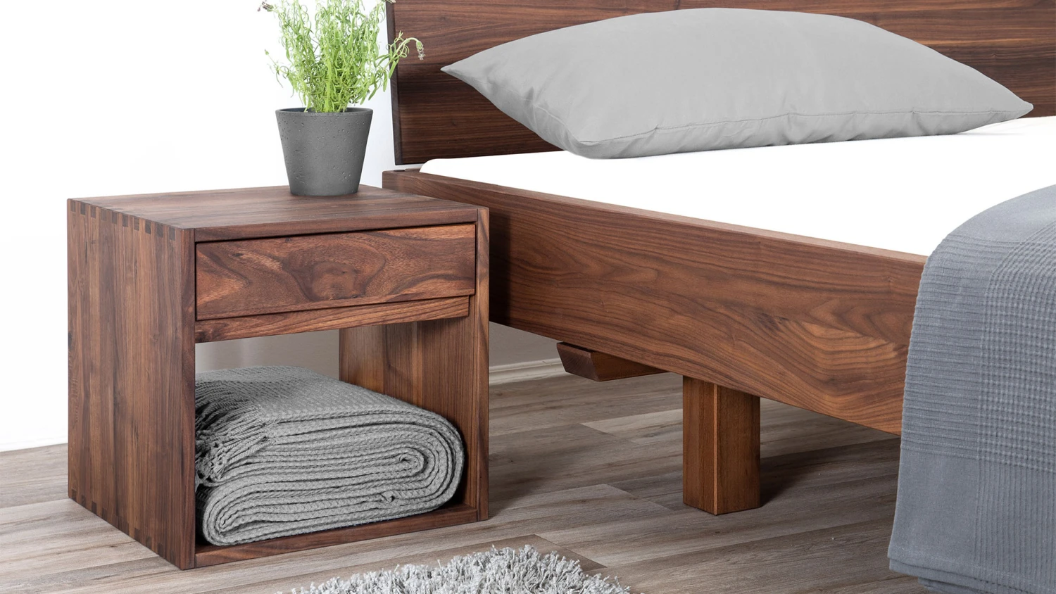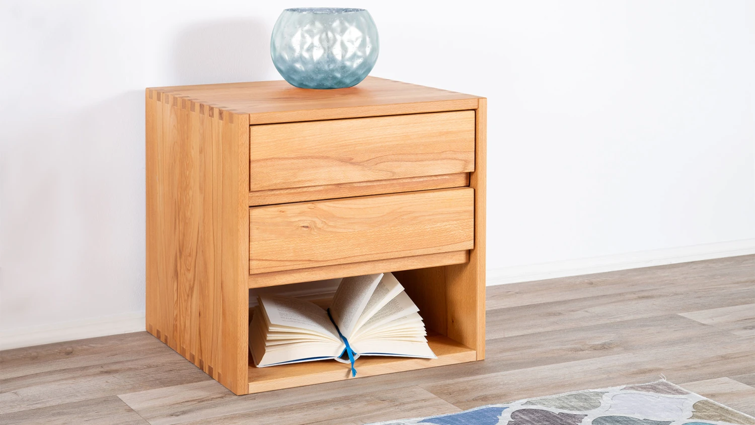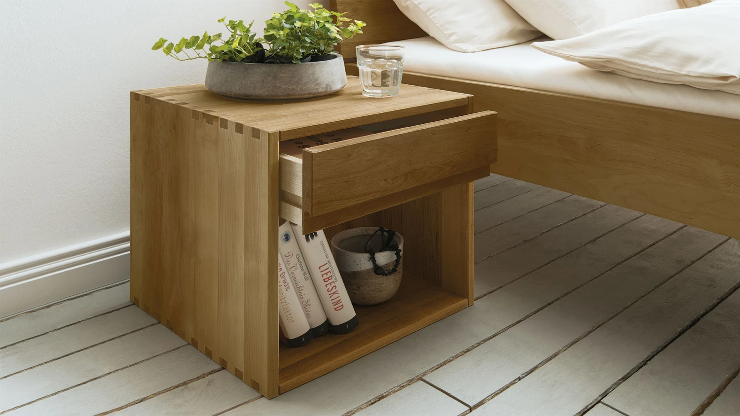- kubischer Nachttisch mit aufwändigen Zinken-Eckverbindungen in 4 Varianten