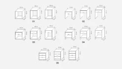 - die Varianten 02-05 sind mit möglichst wenig Metall verarbeitet, nur die Auszugsschienen sind aus Metall – wenn Sie einen komplett metallfreien Nachttisch wĂĽnschen, empfehlen wir Variante 01