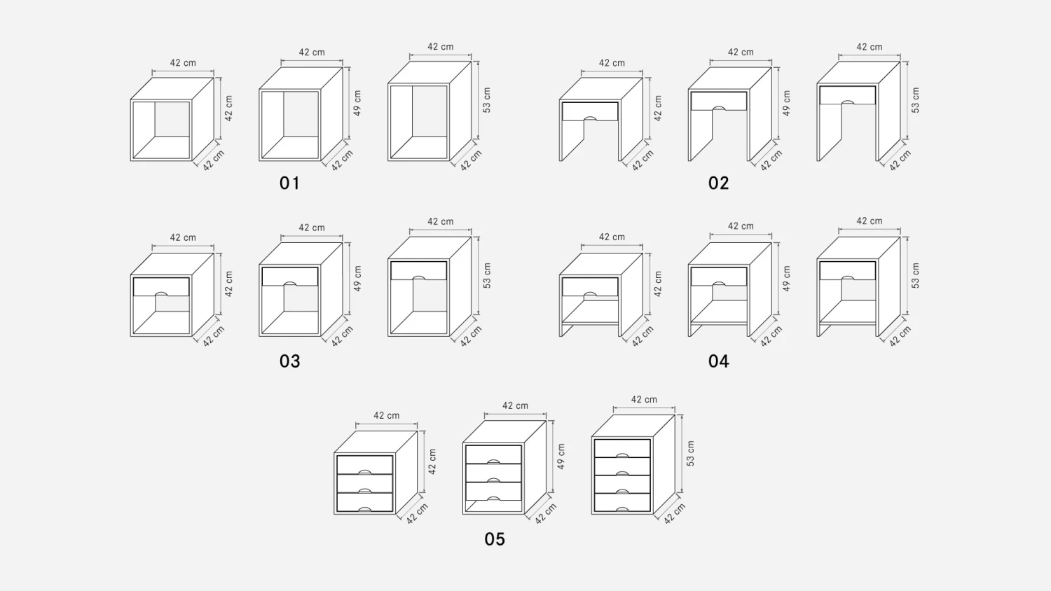 würfelförmig, mit 1 Schublade - Variante 04: