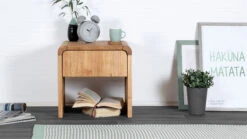 - beim Nachttisch mit Schublade sind nur die Auszugsschienen aus Metall – wenn Sie einen komplett metallfreien Nachttisch wĂĽnschen, empfehlen wir den Nachttisch ohne Schublade