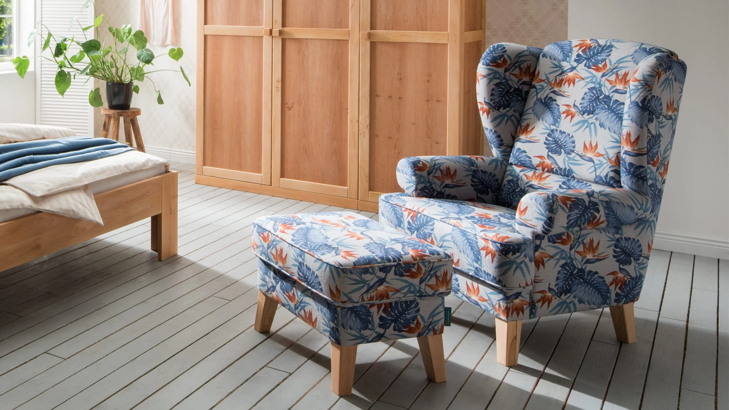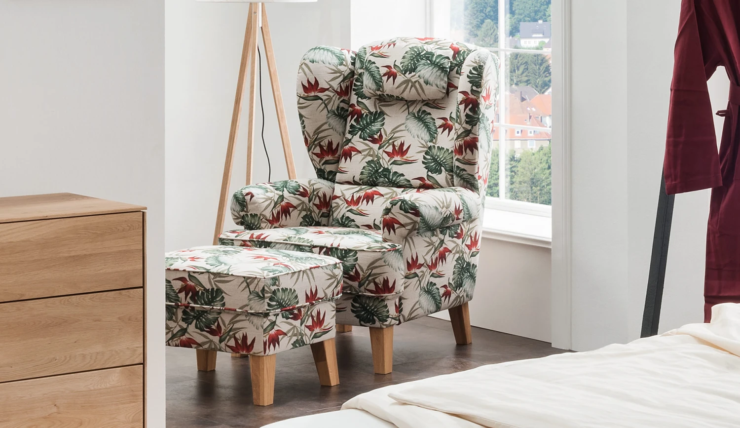 - Sessel mit hoher Lehne und bequemen KopfstĂĽtzen an den Seiten („Ohren“)