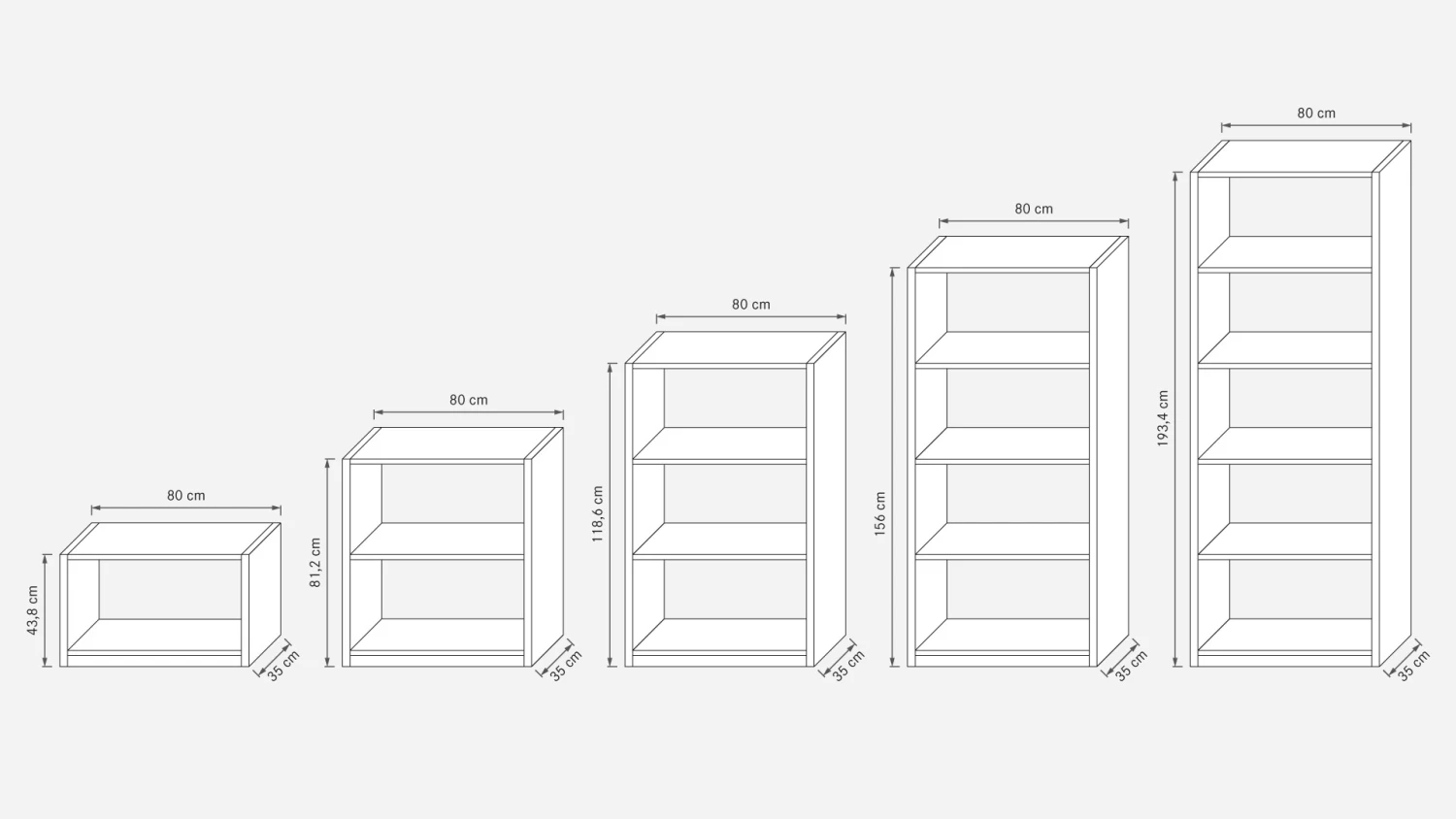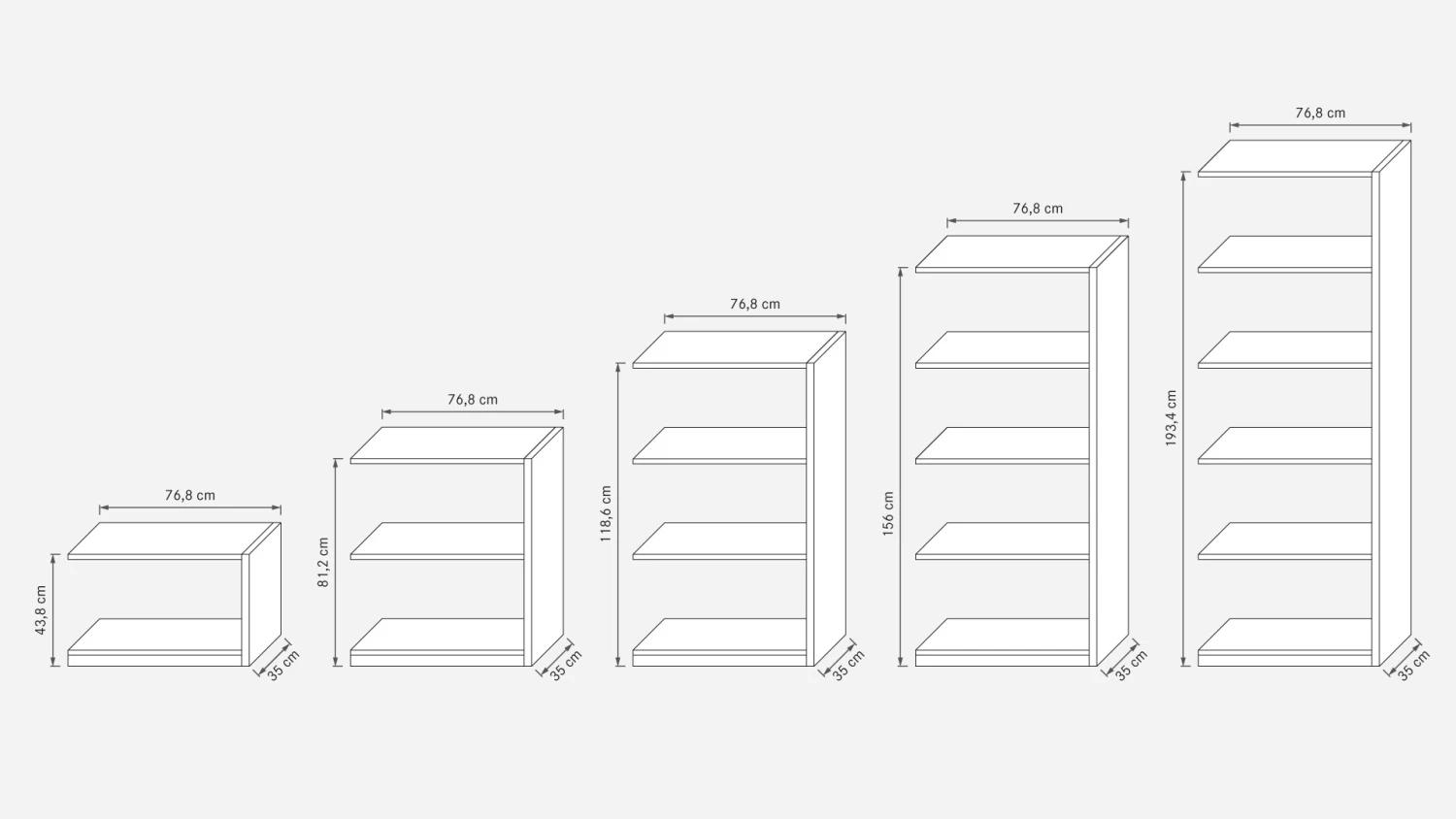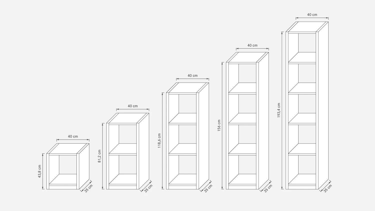 bestehend aus 2 Stollen und 3 Regalböden (inkl. Deckel und Boden) - Grundelemente in Höhe 118,6 cm