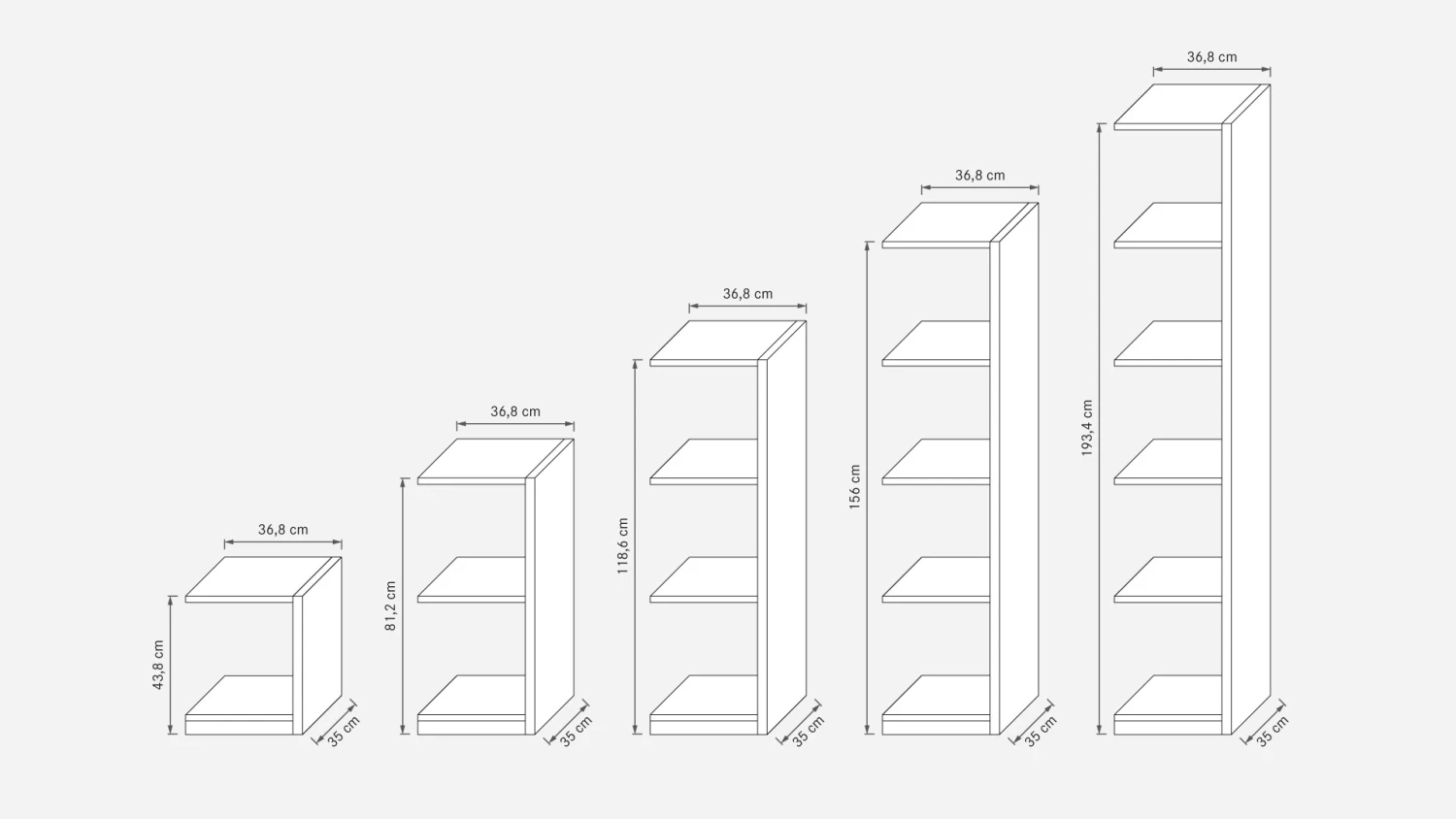 bestehend aus 2 Stollen und 6 Regalböden (inkl. Deckel und Boden) - Anbauelemente in Höhe 43, 8 cm