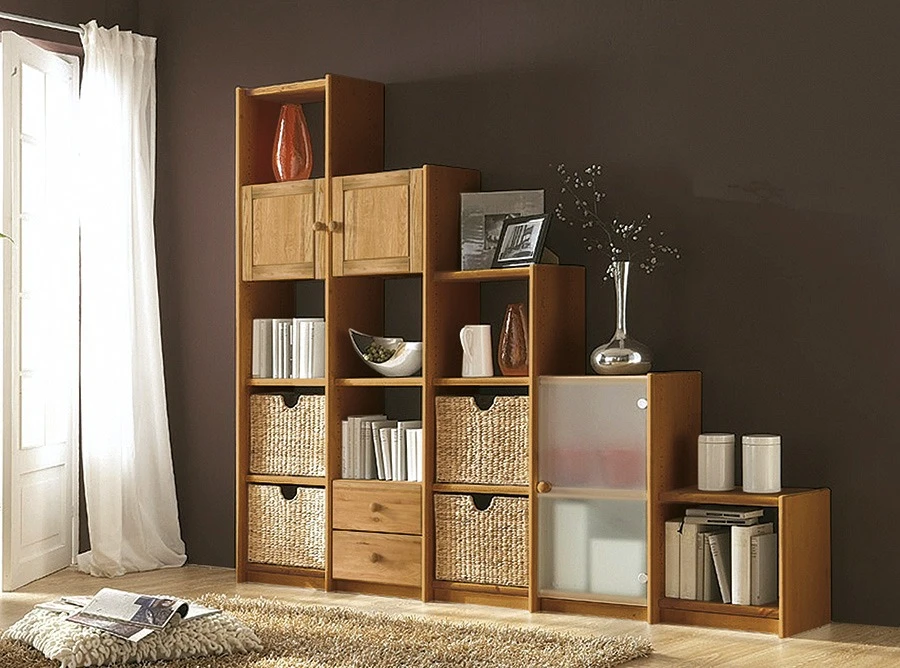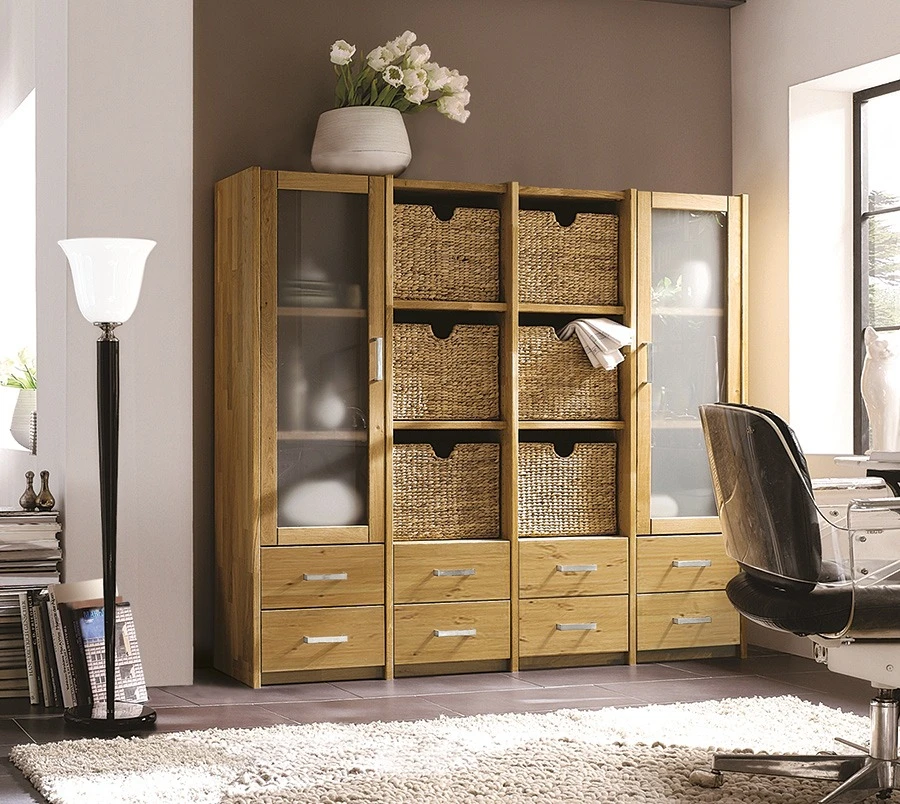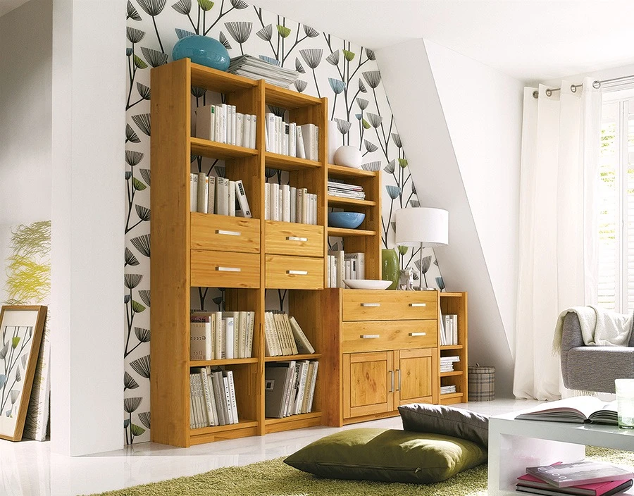 daneben 2 Elemente mit je 3 offenen Fächern und 2 Schublade