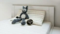 - das Rosshaar für dieses flache und festere Kissen wird aufwändig unter Wasserdampf gekräuselt, so dass seine Sprungkraft dauerhaft erhalten bleibt und danach zu einem etwa 3 cm hohen Vlies vernadelt