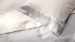 - Doubleface-Optik – eine Seite Satin mit durchgehend filigranen Streifen in ElfenbeinweiĂź, eine Seite Waffelpikee in erlesenem Grau, letztes FĂĽnftel mit stylischem Absatz aus Satin in gestreiftem ElfenbeinweiĂź
