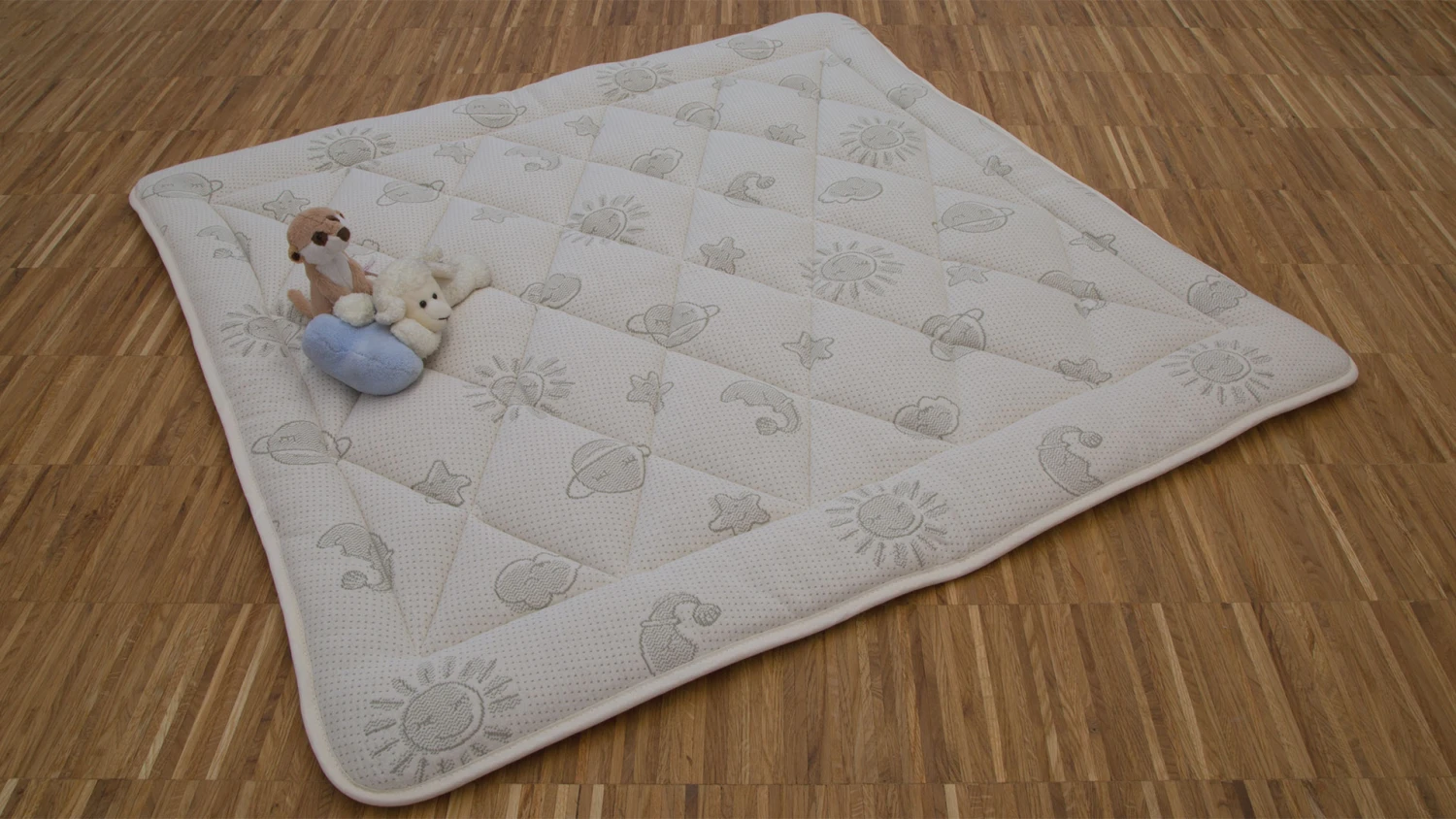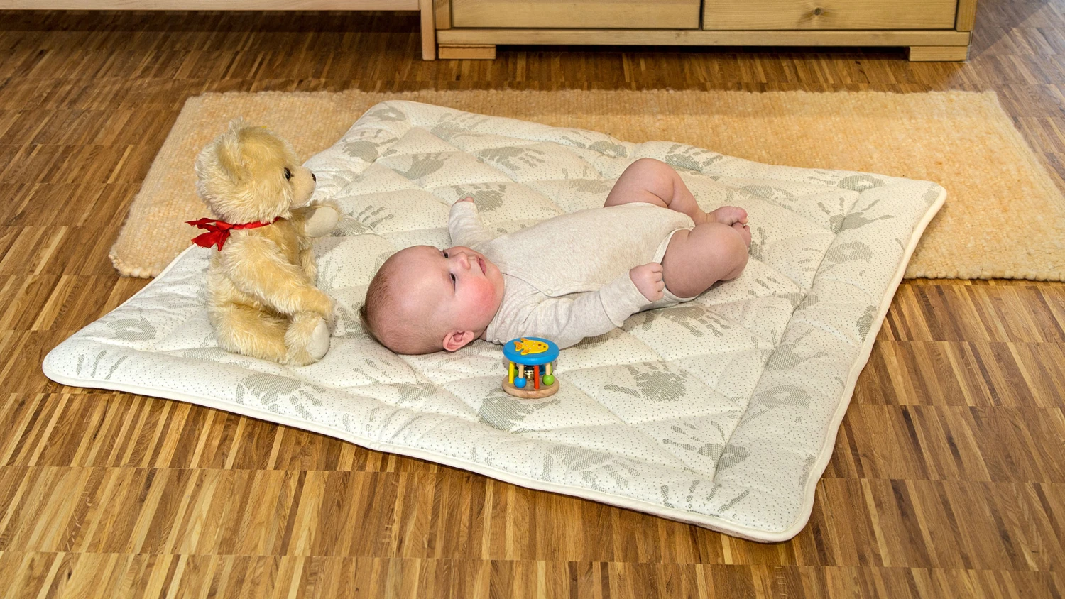 - kuschelweiche, bequem gepolsterte Krabbeldecke – ideal für daheim und unterwegs