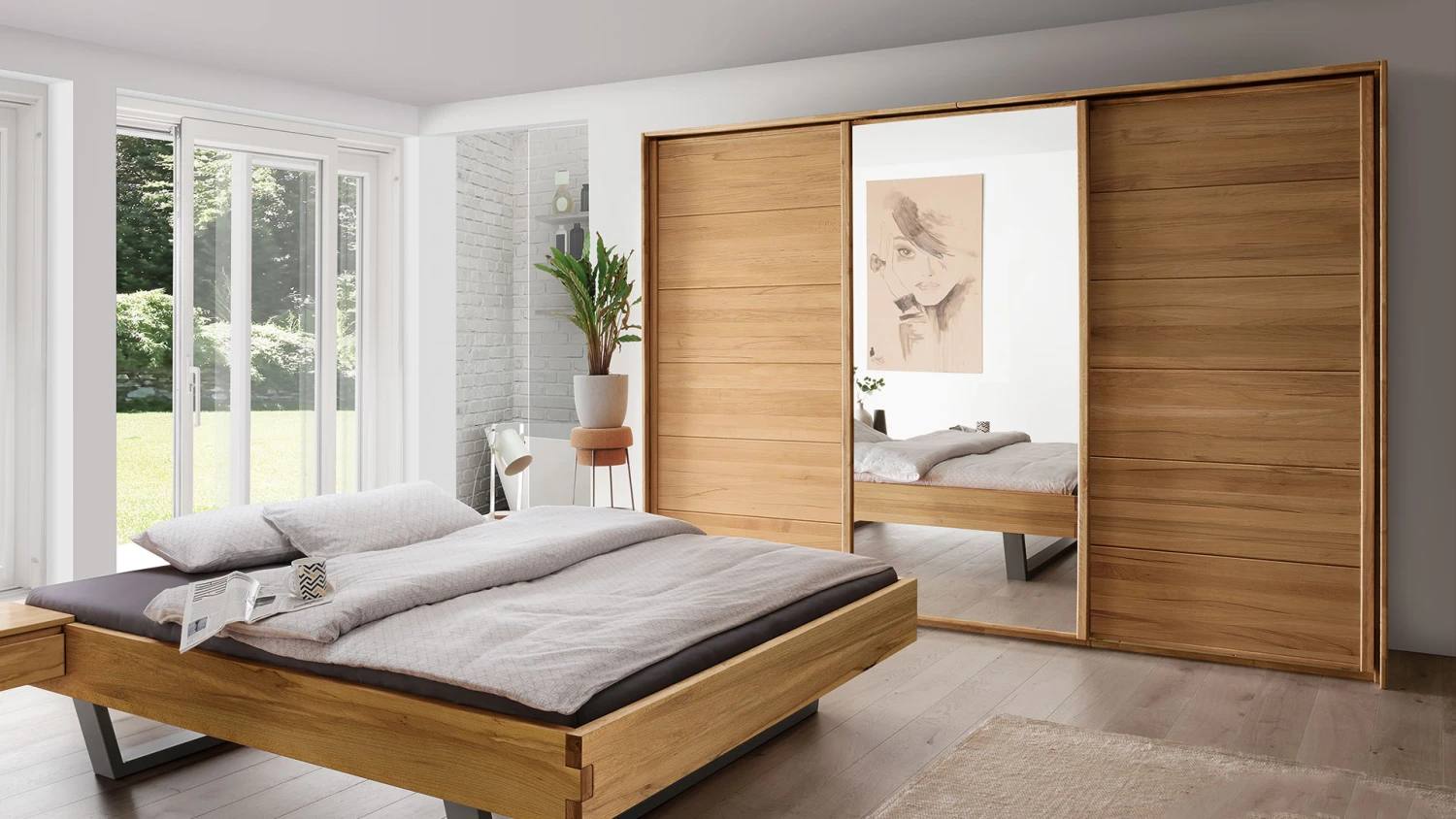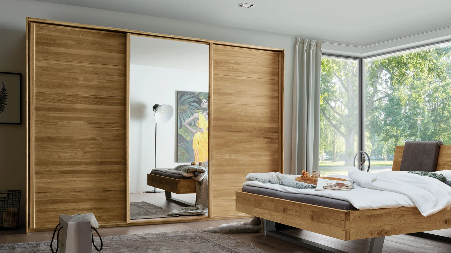 - geradliniger, zeitloser Schiebetüren-Kleiderschrank