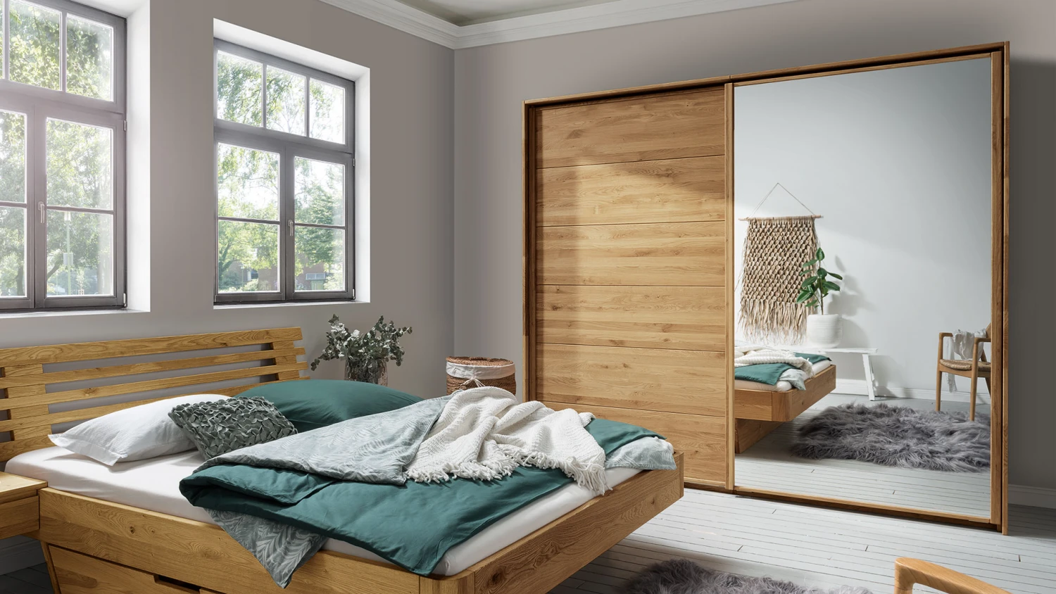 - wahlweise aus massivem Kernbuchen- oder Wildeichenholz – Türen stabverleimt mit durchgehenden Lamellen, Korpus parkettverleimt