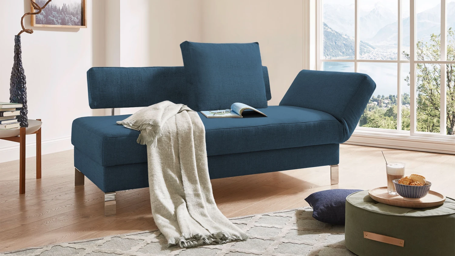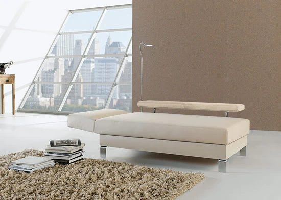 - FĂĽr eine größere Sitzfläche mit bequemem Liegekomfort wählen Sie unser Schlafsofa mit Recamiere „Lucido“